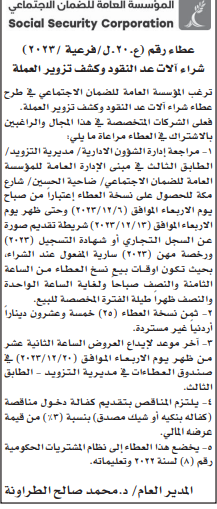 عطاء صادر عن المؤسسة العامة للضمان الاجتماعي