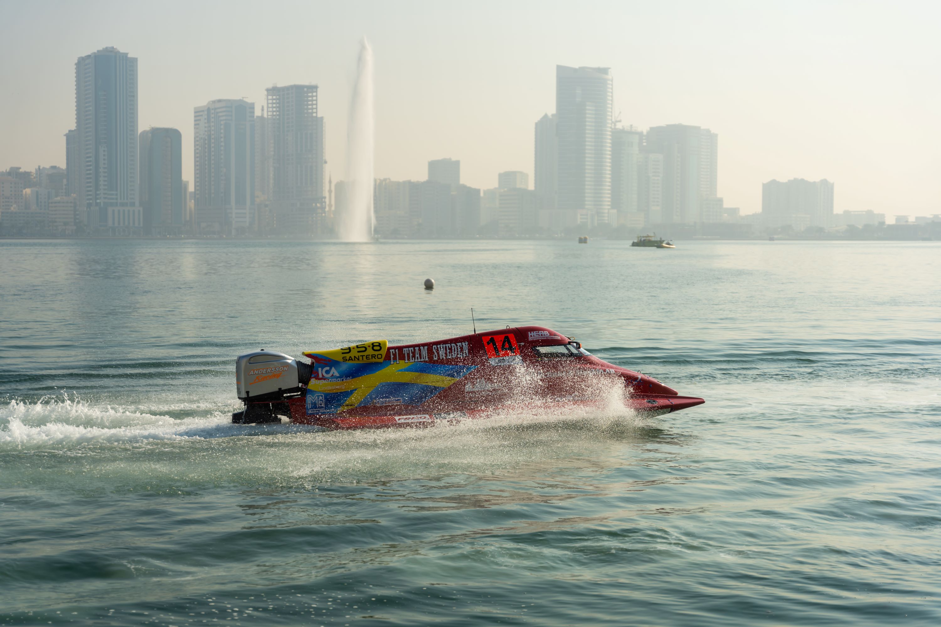 السويدي اندرسون بطل السرعة .. وينطلق أولاً في سباق الشارقة للزوارق السريعة