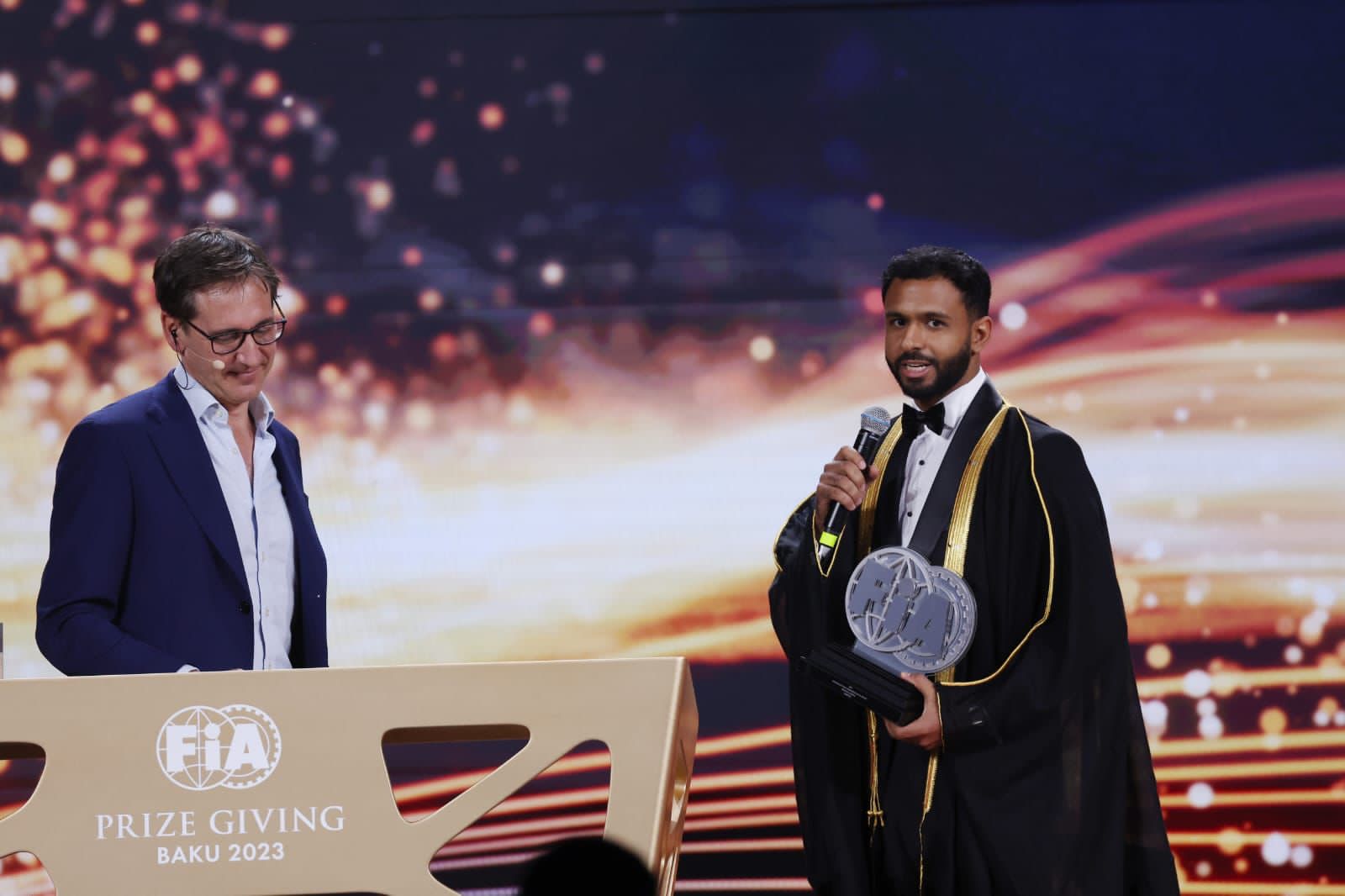عمون - توج السائق العماني عبدالله الرواحي بلقب عالمي في حفل تتويج جوائز الاتحاد الدولي للسيارات والذي أقيم في العاصمة الاذربيجانية باكو.