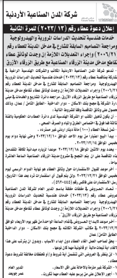 عطاء صادر عن شركة المدن الصناعية الاردنية