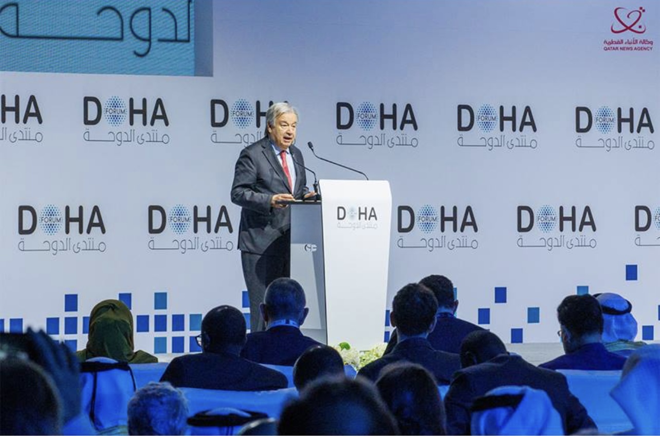وأكد الأمين العام للأمم المتحدة أن موضوع بناء المستقبل المشترك هو الموضوع المثالي للمرحلة التي نعيشها، ولذلك لا بد من بناء الجسور وإيجاد حلول مشتركة للتحديات العالمية، من خلال الشراكة والتضامن الذي تجلى بأبهى صوره في منتدى الدوحة اليوم لدفع الأجندات الطموحة إلى الأمام من أجل بناء مستقبل مشترك نحو عالم أفضل.