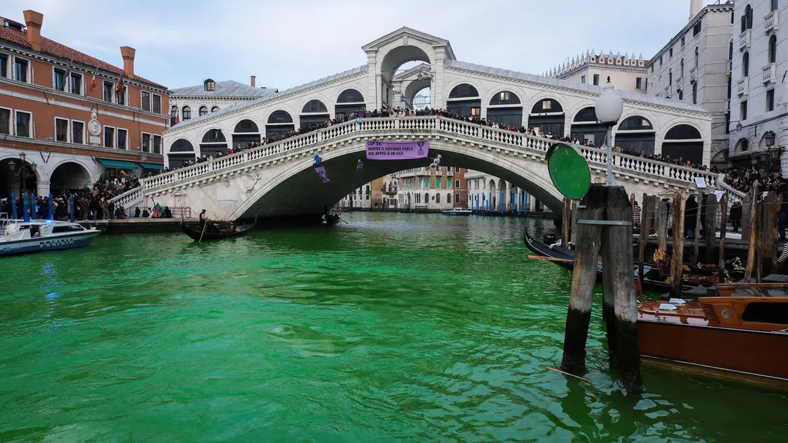 وفي منتصف فترة بعد الظهر، ألقى نشطاء صبغاً أخضر في القناة الكبرى في البندقية، بحسب صور نشرت على شبكات التواصل الاجتماعي.