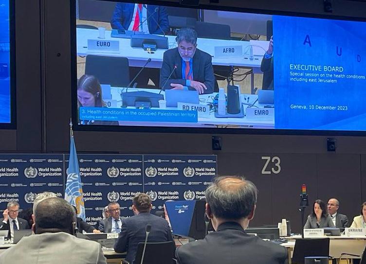 جاء ذلك في مداخلة للمدير الإقليمي في الجلسة الاستثنائية للمجلس التنفيذي لمنظمة الصحة العالمية، التي انعقدت في جنيف بشأن الظروف الصحية في الأراضي الفلسطينية المُحتَلَّة، بما فيها القدس الشرقيه، اليوم الأحد، وفق بيان صادر عن المكتب الإقليمي لمنظمة الصحة العالمية لشرق المتوسط.