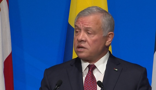 وتابع جلالته: قبل بضع أشهر، تحدثت أمام الجمعية العامة للأمم المتحدة، وحثثت العالم على عدم نسيان اللاجئين السوريين، والآن بينما نجتمع نتعامل مع أزمة نزوح أخرى في المنطقة، فلقد اضطر أكثر من 1.9 مليون فلسطيني في قطاع غزة إلى الفرار من منازلهم داخل القطاع، وسط قصف مستمر.