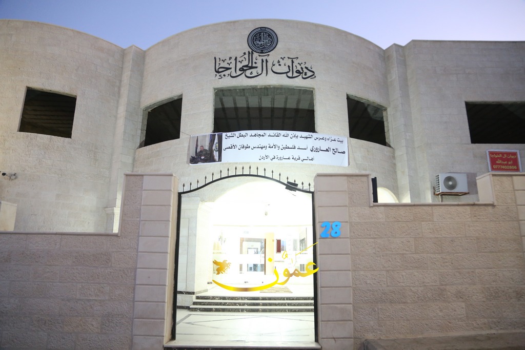 واستقبل أهالي عارورة في الأردن، التعازي بالشهيد صالح العاروري على مدار يومين في ديوان آل الخواجا الكائن في ضاحية الأمير حسن.