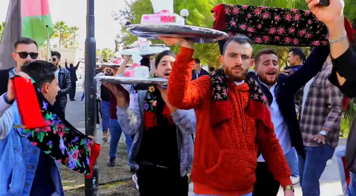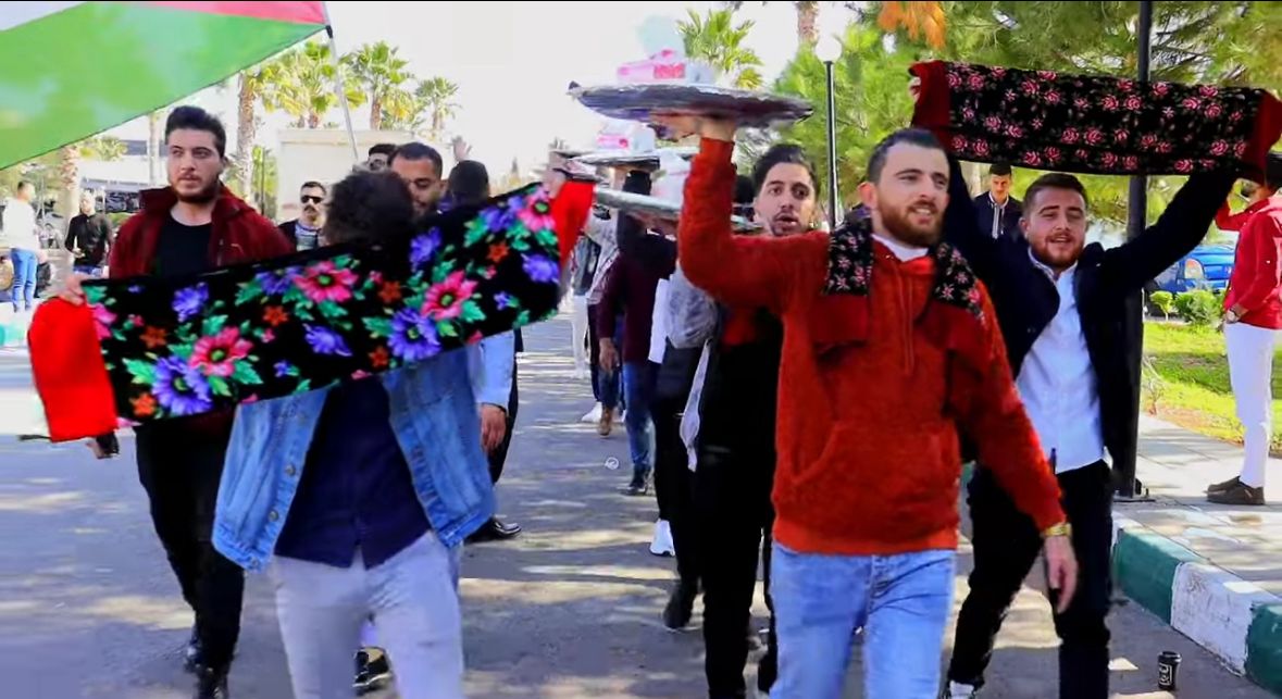 واستمر الطلبة بترديد الأهازيج التراثية القديمة، مع أداء دبكة الجوفية الحورانيه في وسط الحرم الجامعي، فرحا بالتخريج والحصول على درجة البكالوريوس.