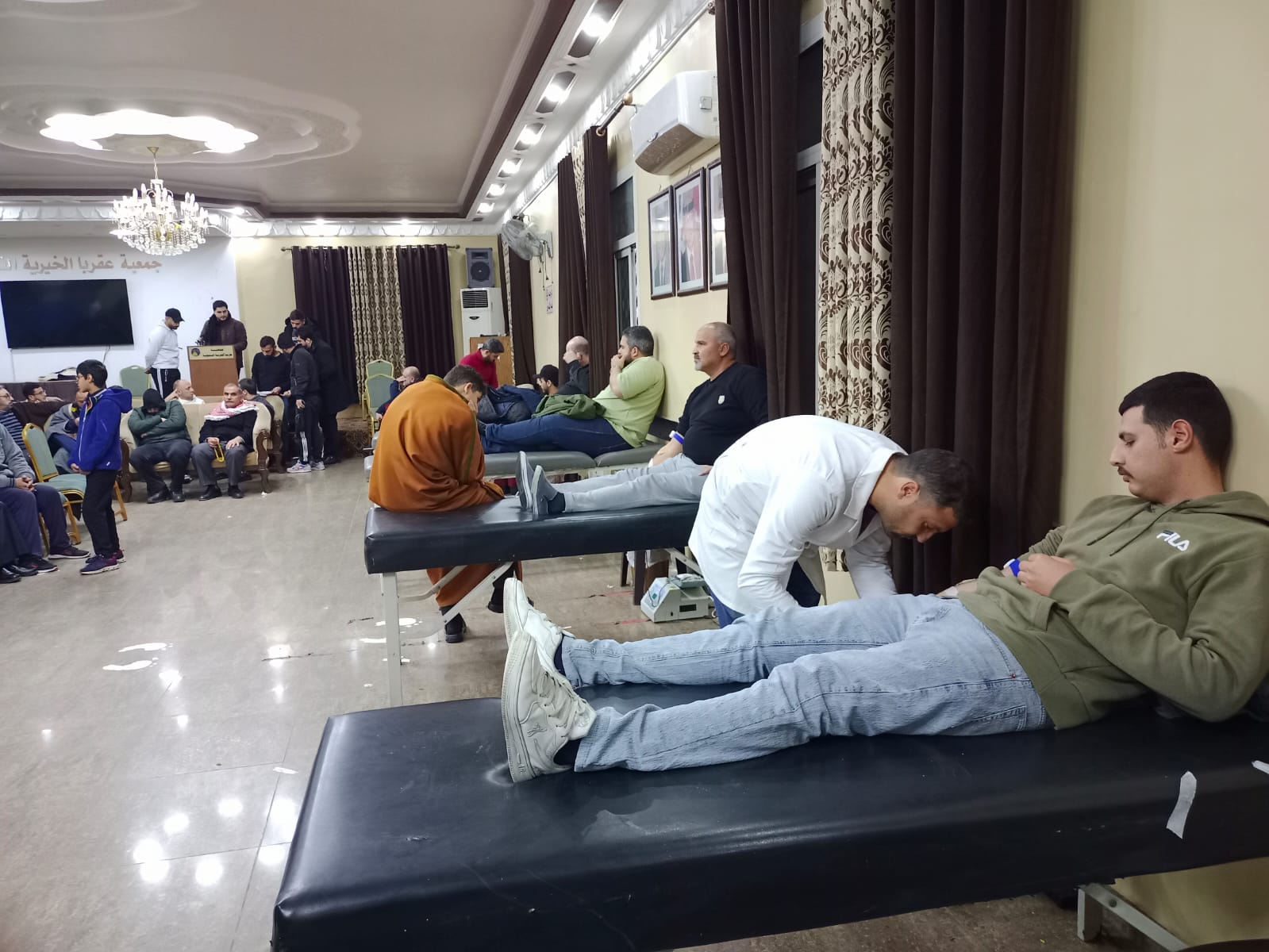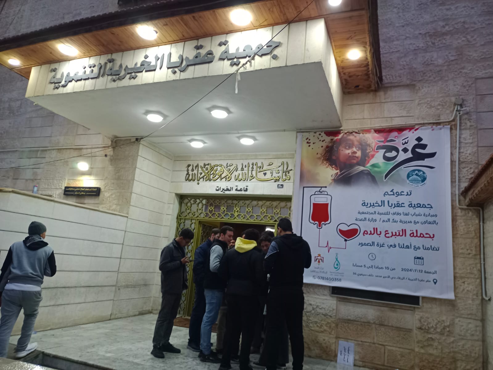 عمون - تحت عنوان "أغيثوا غزة" أقيم في جمعية عقربا الخيرية التنموية حملة تبرع بالدم بالتعاون مع مبادرة شباب لفتا وقاف للتنمية المجتمعية. |