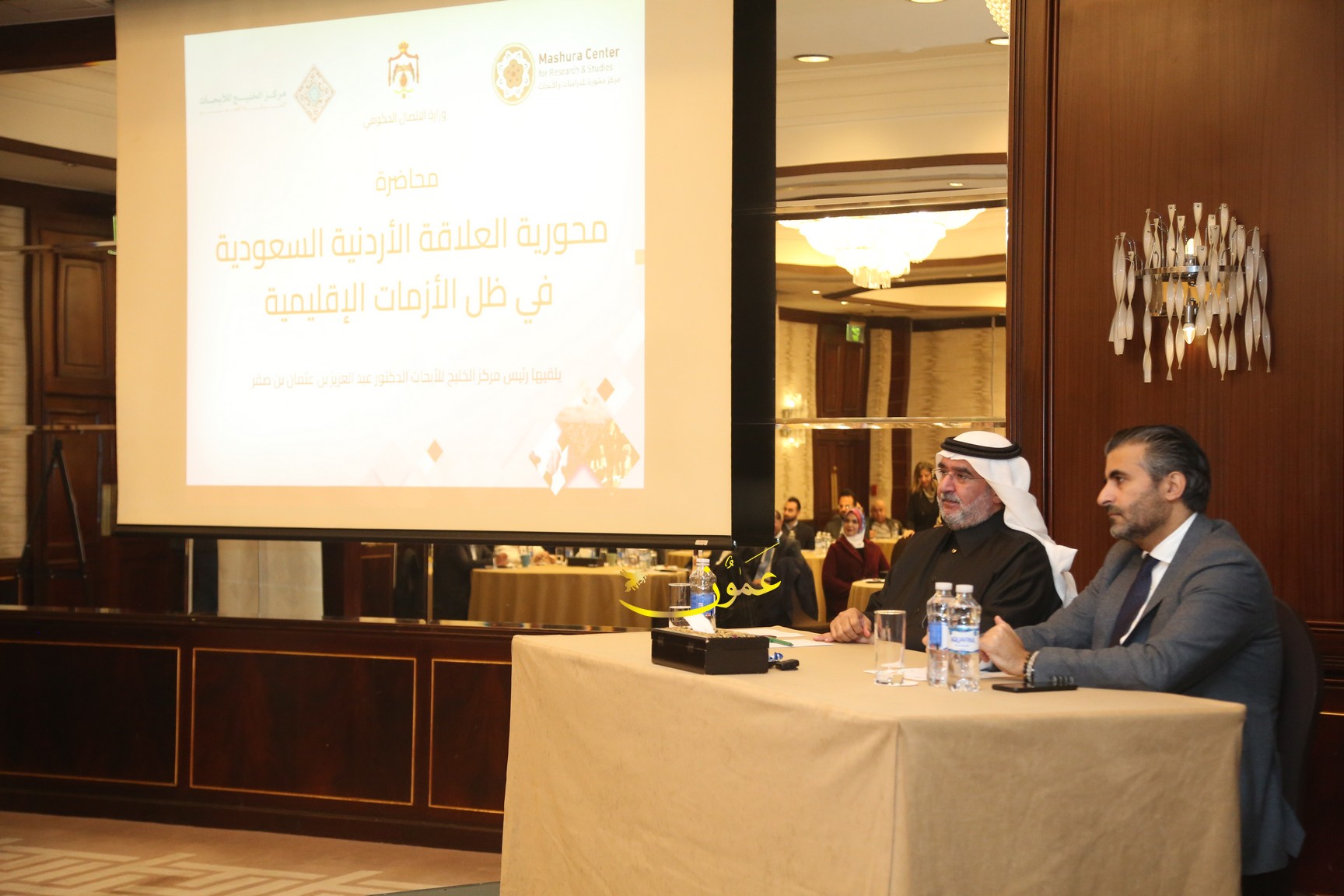 وأدار الحوار في المحاضرة الدكتور عامر السبايلة والذي قدم بن صقر، فيما رحب بالمحاضر مدير مركز مشورة الزميل مالك العثامنة.
