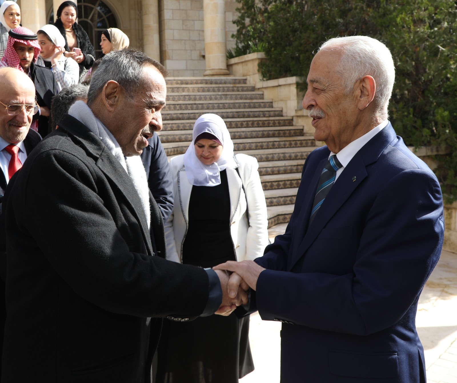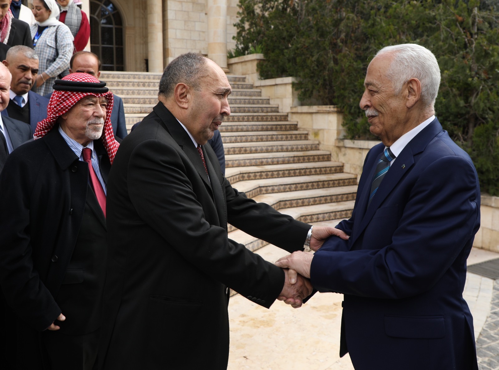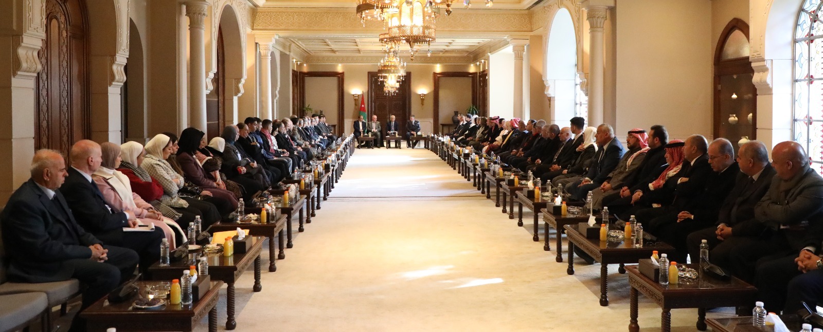 نتشرفُ اليومَ بزيارةِ الديوانِ الملكي الهاشمي العامرِ وإنه لمن حُسنِ الطالعِ أن تتصادفَ زيارتُنا هذه مع مناسبةٍ عزيزةٍ على قلوبنا جميعاً،وهي ذكرى ميلادُ جلالةِ مولانا المفدى الثانيةُ والستون...داعينَ اللهَ العليَ القديرَ أن يحفظَ جلالةَ سيدنا وينصرَه ويديمَ ملكَه....اللهم آمين.