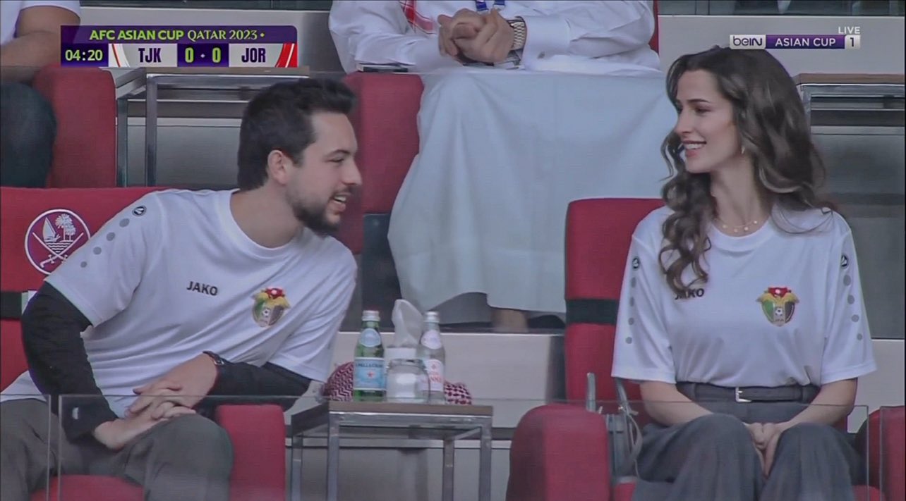 عمون - حضر سمو الأمير الحسين بن عبد الله الثاني، ولي العهد، والاميرة رجوة، والأمير علي والأميرة سلمى، في استاد أحمد بن علي، لمساندة المنتخب الوطني الأردني أمام نظيره الطاجيكستاني، ضمن منافسات ربع نهائي بطولة كأس آسيا 2023.