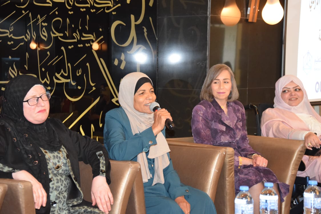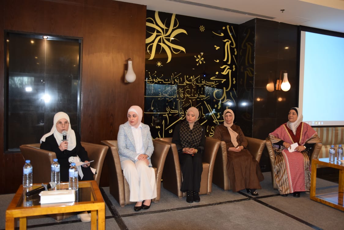 وترأست الدكتورة بتول مجاهد المحيسن مديرة مركز دراسات المراة في جامعة اليرموك والتي تم تقليدها درع سيدة اربد تقديرا لجهودها المبذولة في خدمة المراة في المحافظة وحرصها على العمل على تمكين المراة في جميع النواحي الجلسة الحوراية الاولى للحديث عن قصص نجاح لسيدات توصف كل منهن بانها مبدعة حقيقية والتي ضمت كل من الدكتورة فادية عطاري والدكتورة دينا العوران والدكتورة نوال الشوابكه والاستاذة ايمان بكيرات".