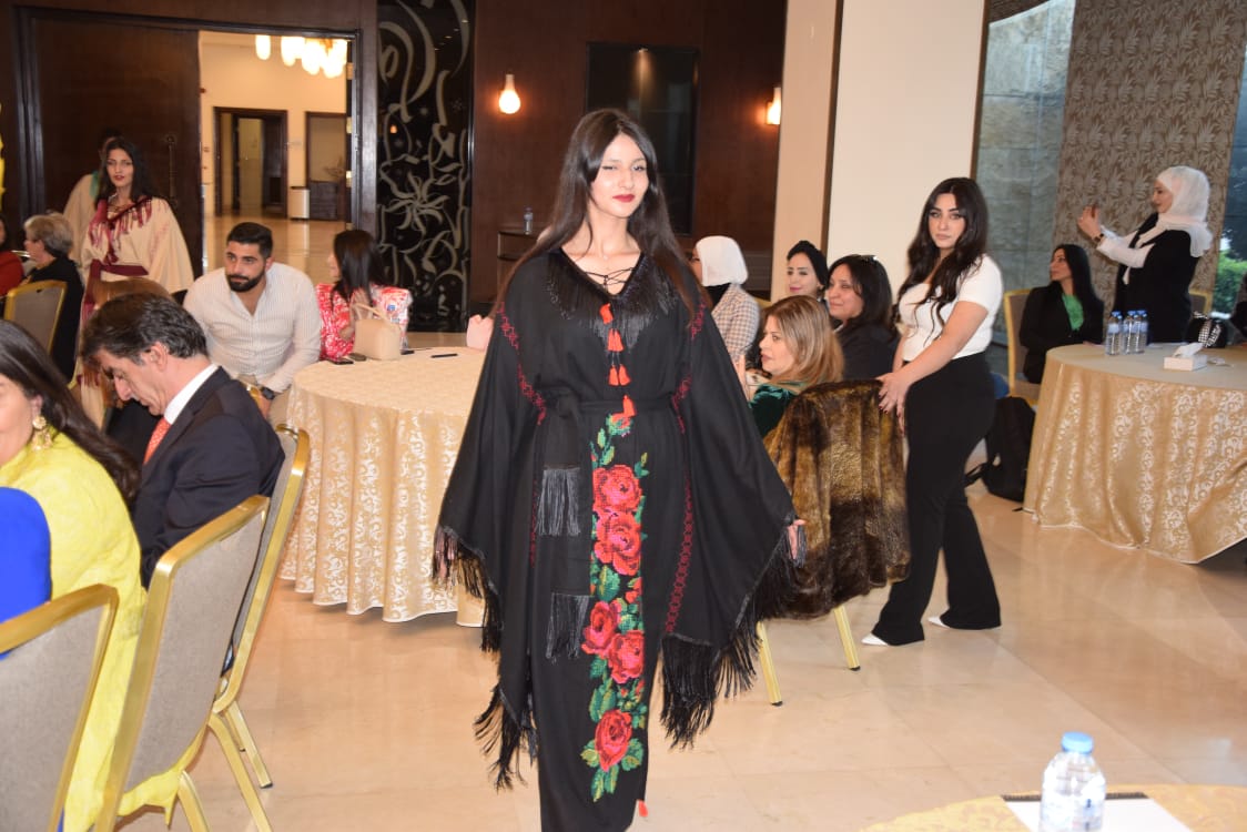وقبل التكريم قدمت مصممات الازياء صباح مطلق ودانه ابو قلبين ودينا عابدين لوحات مميزة من الازياء التي تدمج بين التراث الاردني والفلسطيني".