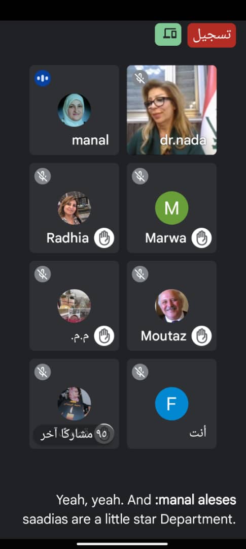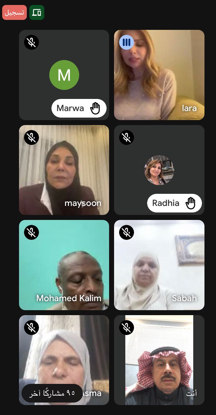 وعطوفة الامين العام لهيئة المراه العربية محمد الدليمي والدكتورة شيرين جلال منير المدير الدائم للامانة العامة لرابطة المراه العربية في القطاع البحري والاستاذة الدكتورة نيفين مكرم مدير مركز التخطيط القومي الثقافي والاجتماعي عضو المجلس القومي للمراه /مصر وسعادة النائب حليمة الصادق رئيس كتلة البرلمانيات من اجل ليبيا وسعادة النائب نجلاء باخوم عضو مجلس النواب في مصر وسعادة النائب صباح الدردور عضو مجلس النواب الاردني وسعاددة النائب اسماء الرواحنة عضو مجلس النواب الاردني وسعادة د.سلوى الجسار نائب سابق في مجلس الامة الكويتي استاذة في كلية التربية جامعة الكويت وسعادة الدكتورة ريم ابو دلبوح نائب سابق في مجلس النواب الاردني وعضو مجلس امناء المركز الوطني لحقوق الانسان وسعادة رسمية الكعابنة نائب سابق في مجلس النواب الاردني وعضو مجلس امناء المرصد العربي لحقوق الانسان/ البرلمان العربي وسعادة ماجدة النويشي نائب سابق في مجلس النواب المصري ونائب رئيس تحالف البرلمانيات العربيات.