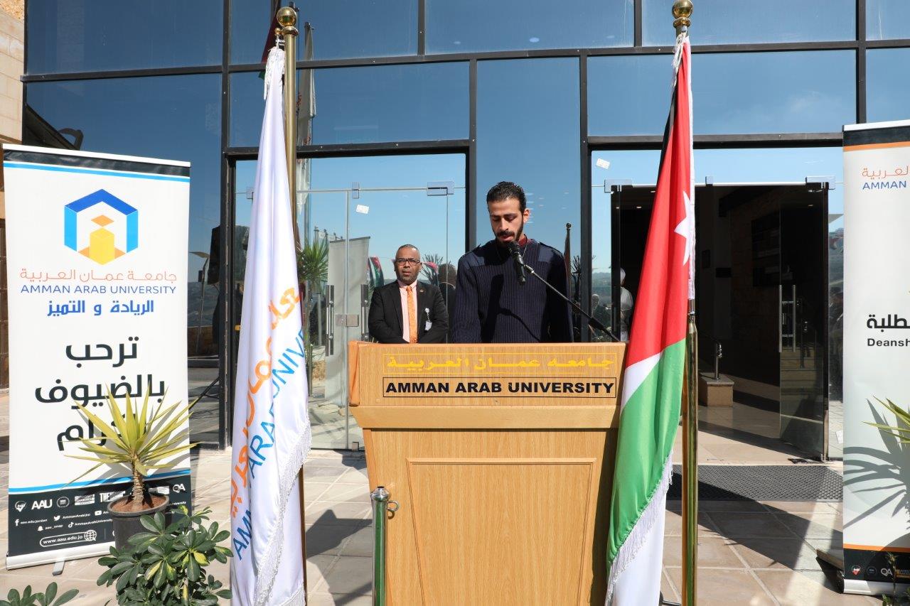 عمون - أقامت جامعة عمان العربية احتفالاً برفع علم اليوبيل الفضي وذلك بمناسبة مرور (25) عاماً على تسلّم جلالة الملك عبد الله الثاني ابن الحسين – حفظه الله سلطاته الدستورية وذلك خلال الحفل الذي رعاه الأستاذ الدكتور محمد الوديان رئيس الجامعة وبحضور مساعدي الرئيس وعمداء الكليات ومدراء الوحدات الإدارية وأعضاء الهيئتين التدريسية والإدارية وطلبة الجامعة، وذلك بتنظيم من عمادة شؤون الطلبة.