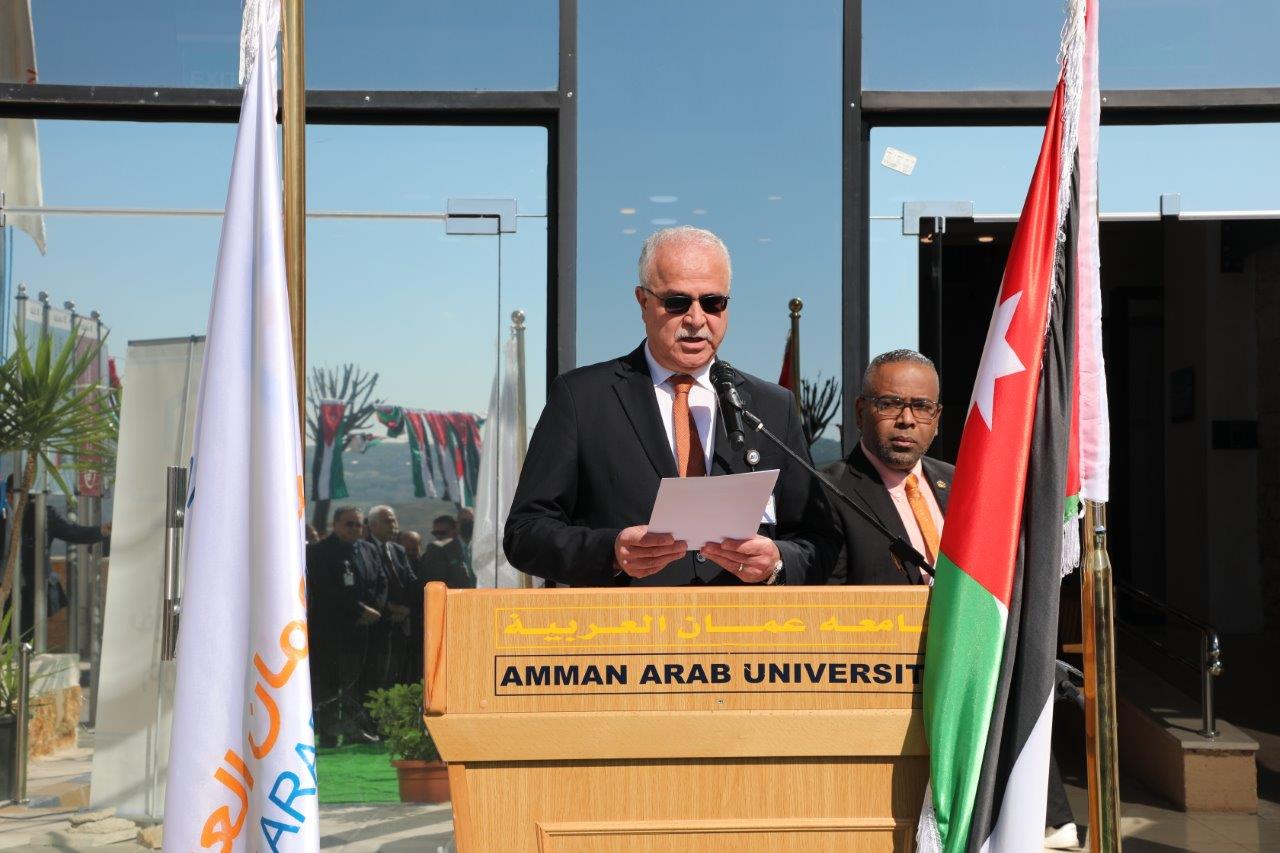 حيث أكد الدكتور الوديان في كلمته بأننا في جامعة عمان العربية اليوم نقف وتغمرنا البهجة والأفراح احتفالاً باليوبيل الفضي لتسلّم جلالة الملك عبدالله الثاني ابن الحسين – حفظه الله- سلطاته الدستورية وجلوسه الملكي على عرش المملكة الأردنية الهاشمية، وإننا في هذا اليوم نستذكر تاريخاً حافلاً مكلّلاً بالفخر والاعتزاز بحكم ملكٍ جاء وارثاً لكل قيم النبل والأصالة والكرم عن أبيه وأجداده من بني هاشم الأطهار، حاملاً هموم شعبه ووطنه وهموم أمته، ونقف هذا اليوم لنجدد مع أبناء الأسرة الأردنية الواحدة العهد والولاء والمحبة لقائد الوطن، سائرين خلف قيادته الحكيمة ورؤيته الشمولية التي تراهن على إرادة الانسان الأردني وكفاءته وقدراته وإبداعاته، وأضاف الوديان بأننا نجدد بهذا اليوم أيضاً الوفاء والبيعة كما نجددها كل عام ولأعوام عديدة بعون الله تعالى، وبأننا وفي هذه الذكرى المجيدة نستعيد صفحاتنا الوطنية الخالدة وما أنجزه الهاشميون على مدى السنين في مسيرة تتواصل إنجازاتها وبلوغ أهدافها التي يبذل جلالة الملك عبدالله الثاني كل جهوده ومن خلفه الأردنيون الأوفياء من أجل تحقيقها.