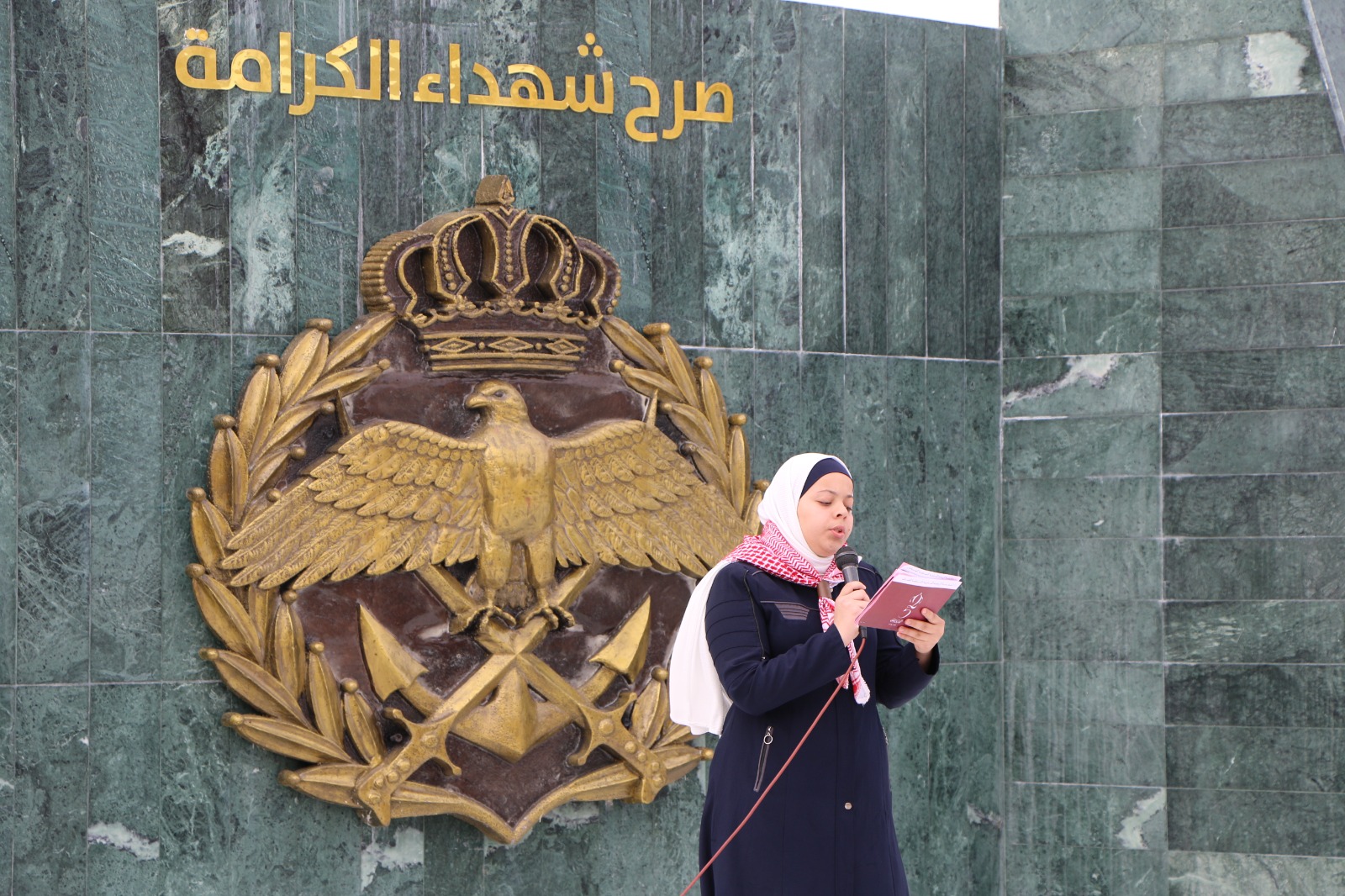 سلام على الشرفاء الذين صدقوا ما عاهدوا الله عليه، سلام على من أعادوا هيبة الأمة وكرامتها ونسجوا بالبطولة خيوط النصر في يوم الكرامة، سلام على الأرواح التي قضت فوق أرض الكرامة وفي معركة الكرامة وروت أرضها بنجيع دم الشهداء الطاهر حيث بدأ البرنامج الإذاعي بالسلام الملكي، ومن ثم قدمت الطالبات النشيد الوطني، وفقرات دينية واستعراضية متنوعة، وتم بث البرنامج الإذاعي مباشرةعلى صفحة المدرسة الرسمية على موقع الفيسبوك.