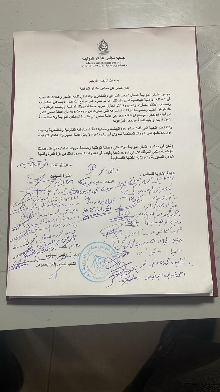 عشائر الدوايمة في الأردن: عائلة أبو حجر لا تنتمي لنا31-03-2024 11:33 AM