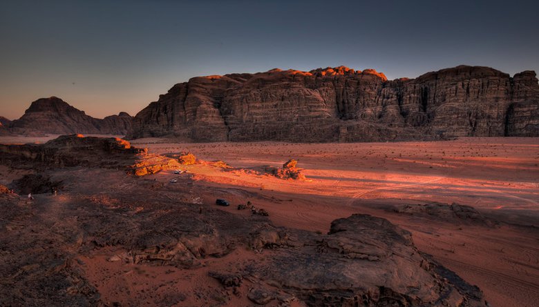 عمون- في قلب صحراء البادية الجنوبية، تتشكل الكثبان الرملية كلوحات فنية مذهلة تحت أشعة الشمس، وتتناغم الرمال مع الهواء العليل لتعزف أنغامًا هادئة على أوتار السكون، وبوسط هذا السكون تتألق صحراء "وادي رم" لتصنع لوحة طبيعية ساحرة تبهر العيون وتأسر القلوب.
