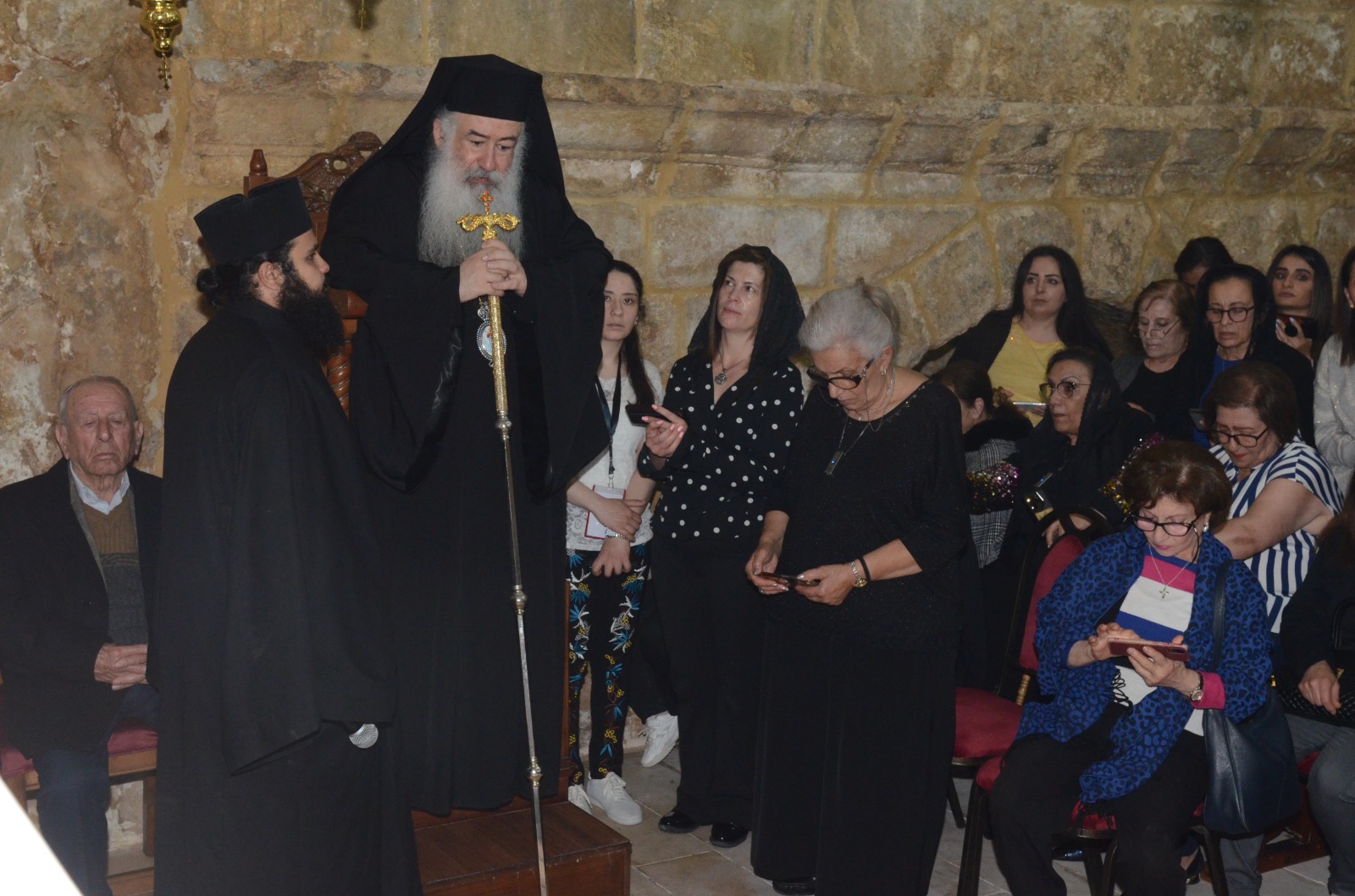 في البداية تم قص شريط افتتاح الكنيسة ثم سار الجميع على وقع معزوفات كشافة ومرشدات كاتدرائية دخول السيد الى الهيكل نحو الكنيسة مكرساً سيادته الكنيسة بالماء المقدس ، وأشعل القنديل الأول فيها بعد انتهاء أعمال الترميم، ثم تحدث سيادته معرباً عن سعادته بترميم هذه الكنيسة الأثرية التي يعودُ بناؤها لعام 650 م وتقعُ عندَ مدخلِ وادي السّلط في الرُّكنِ الشّرقيّ من المدينة وتشهد لوجودنا المسيحي وحضارتنا المتأصلة في هذه البلاد المقدسة، شاكراً جهود الرئيس الروحي ولجنة الكنيسة والآباء الكهنة على جهودهم المباركة في ترميم الكنيسة والاهتمام بجمالها وبهائها.
