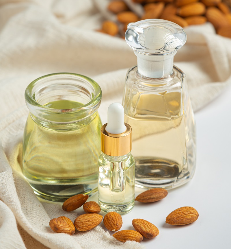 زيت اللوز الحلو غني بالأحماض الدهنية التي ترطب وتغذي فروة الرأس، مما يساعد على تقليل الجفاف والتقشر والحكة.