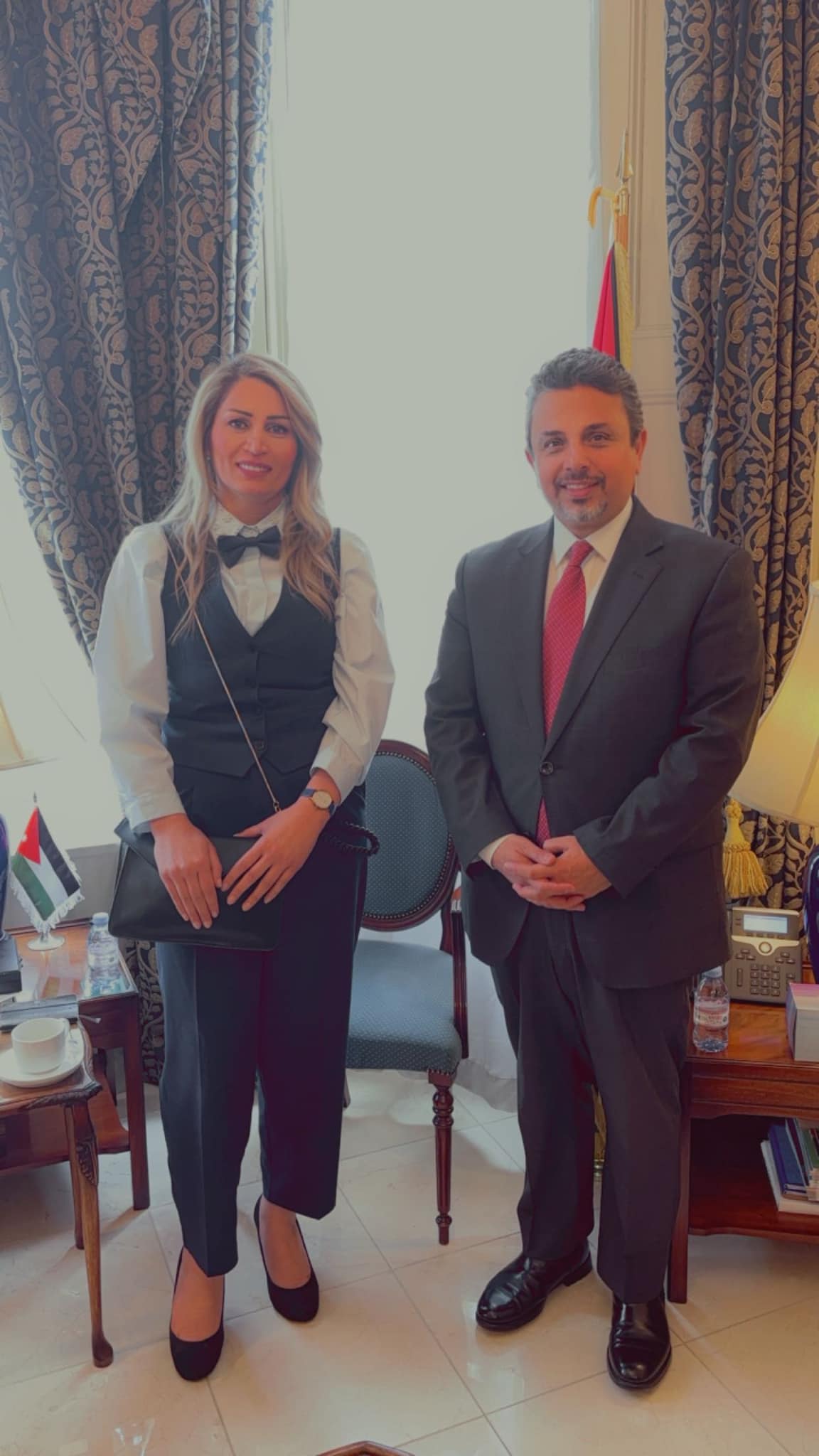 والتقت المذيعة الخرابشة مع السفير الأردني منار الدباس، وطاقم السفارة.
