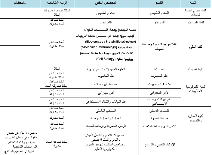 •يفضل من لديه أبحاث علمية منشورة في مجلات علمية عالمية مميزة في آخر سنتين.