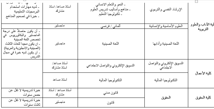 •أن يكون حاصلاً على البكالوريوس والماجستير والدكتوراه في التخصصات المطلوبة من جامعة مرموقة ومعترف بها