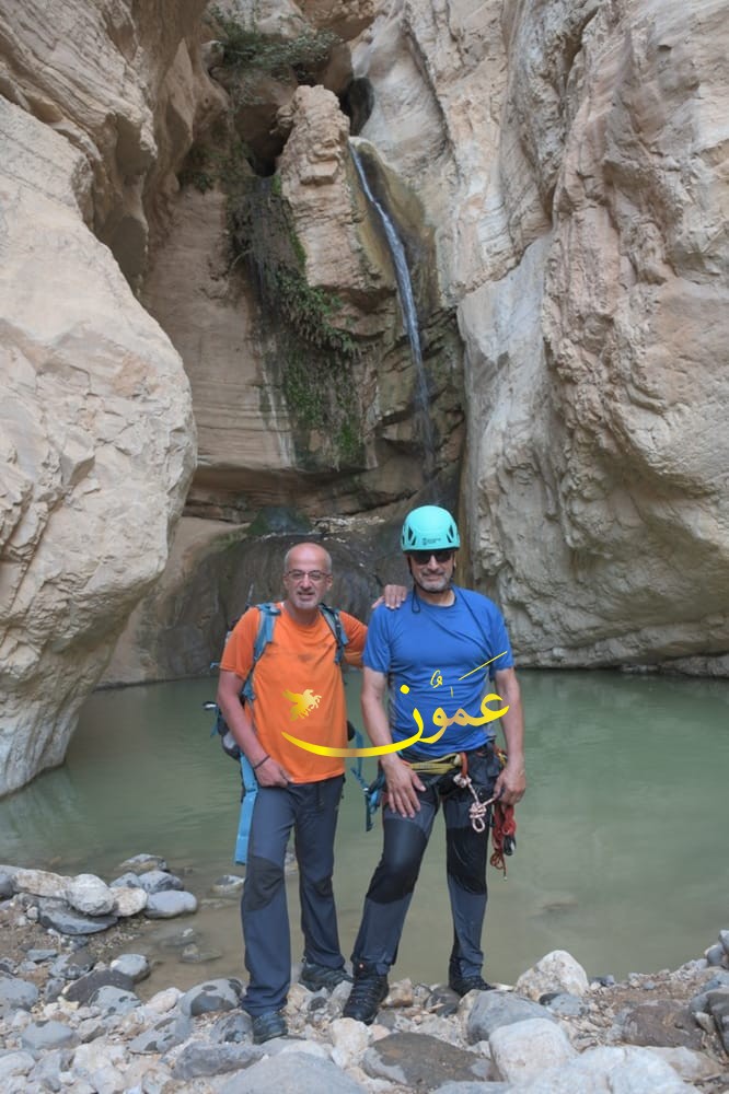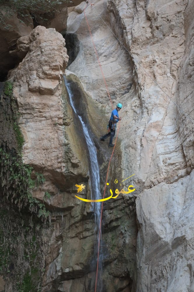 كان اتجاهنا الأول نحو بركة الماء أسفل الشلال الهادر من ارتفاع 6 أمتار وتجديد الطاقة والإنتعاش بما اكتسبته أجسادنا من حرارة المشي وقد أتيح لنا التمتع بفنجان من القهوة وكأسا من الشاي، ثم استكمالنا الطريق نحو الشلال الأول، مع حرص وتأكيد قائد المجموعة على ارتداء الخوذ والتقيد بإرشادات السلامة للقيام بالإنزال الأول والذي تم من ارتفاع 32 مترا متخللين لولبيات صقلتها المياه، تلاه الإنزال الثاني والأعلى منه قليلا المفضي لبركة تتجاوز بارتفاعها قامة الإنسان بمسطح أبعاده تقارب عشرة أمتار مربعة ولا مفر إلاّ بتجاوزها، احتجنا أن نعمل إنزلاق حبلي بين اللولبيات لإنزال الحقائب والأدوات دون أن تبتلْ بالماء ولحماية الأمتعة من العطب والتمزق وهنا تظهر براعة القائد في إدارة المجموعة والمسير واختيار الأسلوب الأمثل.