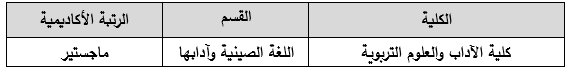 2.أن يكون حاصلًا على درجة الماجستير والبكالوريوس في تخصص اللغة الصينية