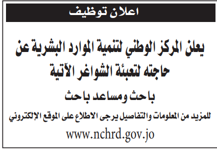 وظائف شاغرة لدى المركز الوطني لتنمية الموارد البشرية