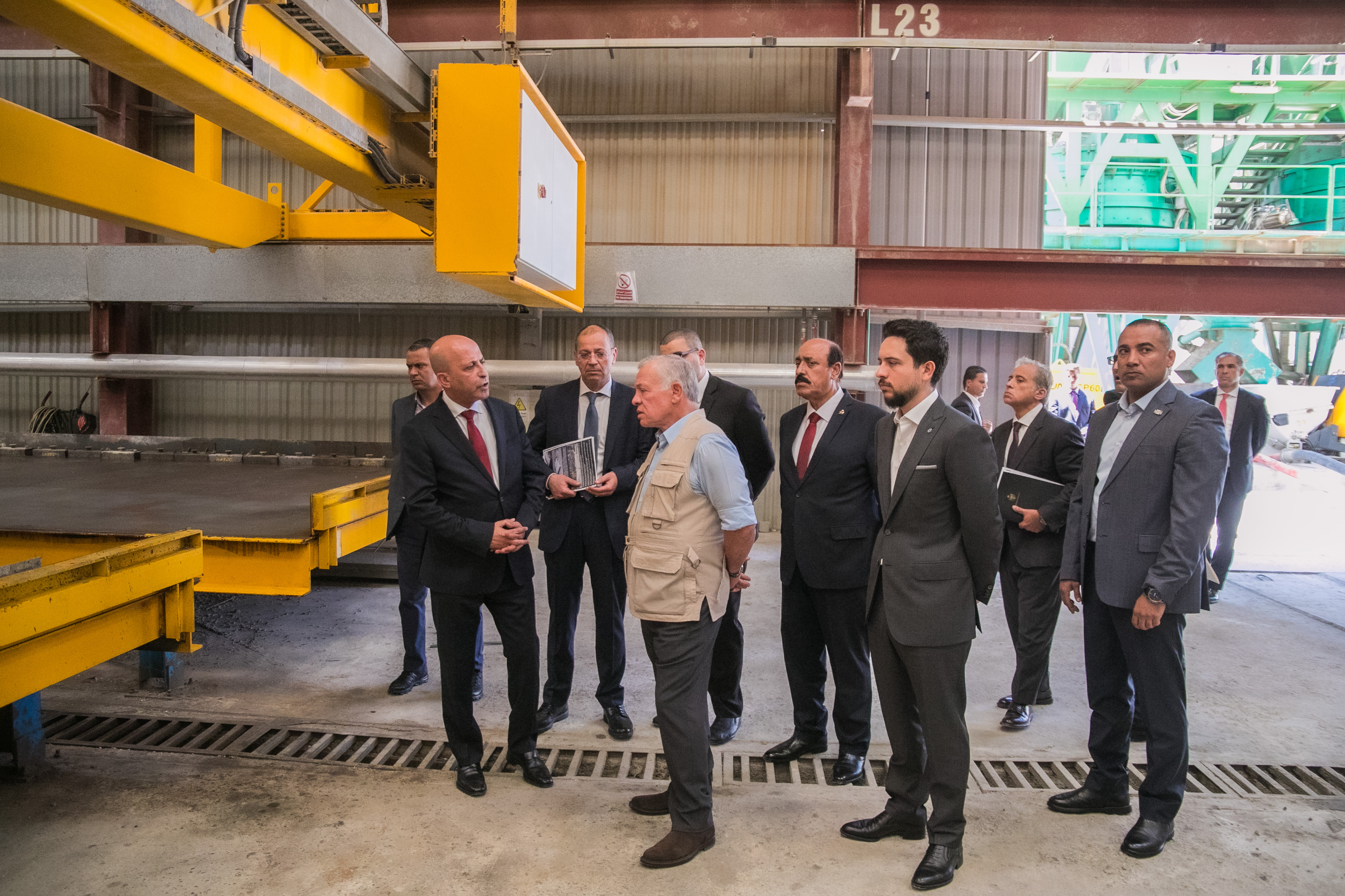 واستمع جلالته إلى شرح عن منتجات المصنع واستخداماتها المتعددة في أعمال البناء وتأسيس البنى التحتية.