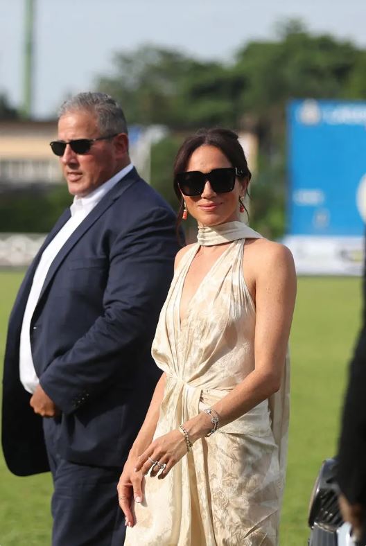 من الأزياء اللافتة التي اعتمدتها ميغان ماركل في اليوم الثالث والأخير من هذه الرحلة ثوب طويل من الحرير باللون البيج يحمل توقيع Johanna Ortiz سعره 2100 دولار. وقد نسّقته مع صندل باللون الذهبي من Burberry، نظارات شمسيّة من Heidi Merrick سعرها 200 دولار، أقراط للأذنين حصلت عليها كهدية في نيجيريا ومجموعة من الخواتم الماسيّة من Birks يقدّر سعرها بحوالي 6600 دولار.