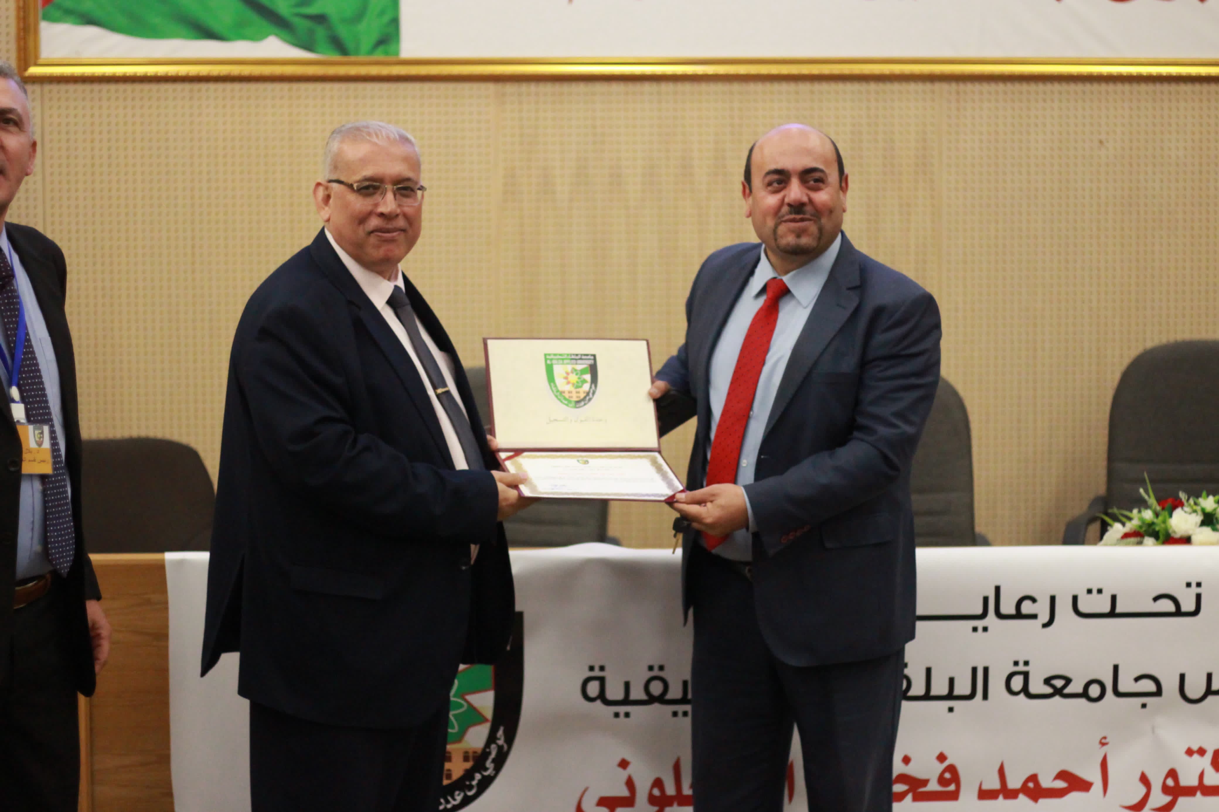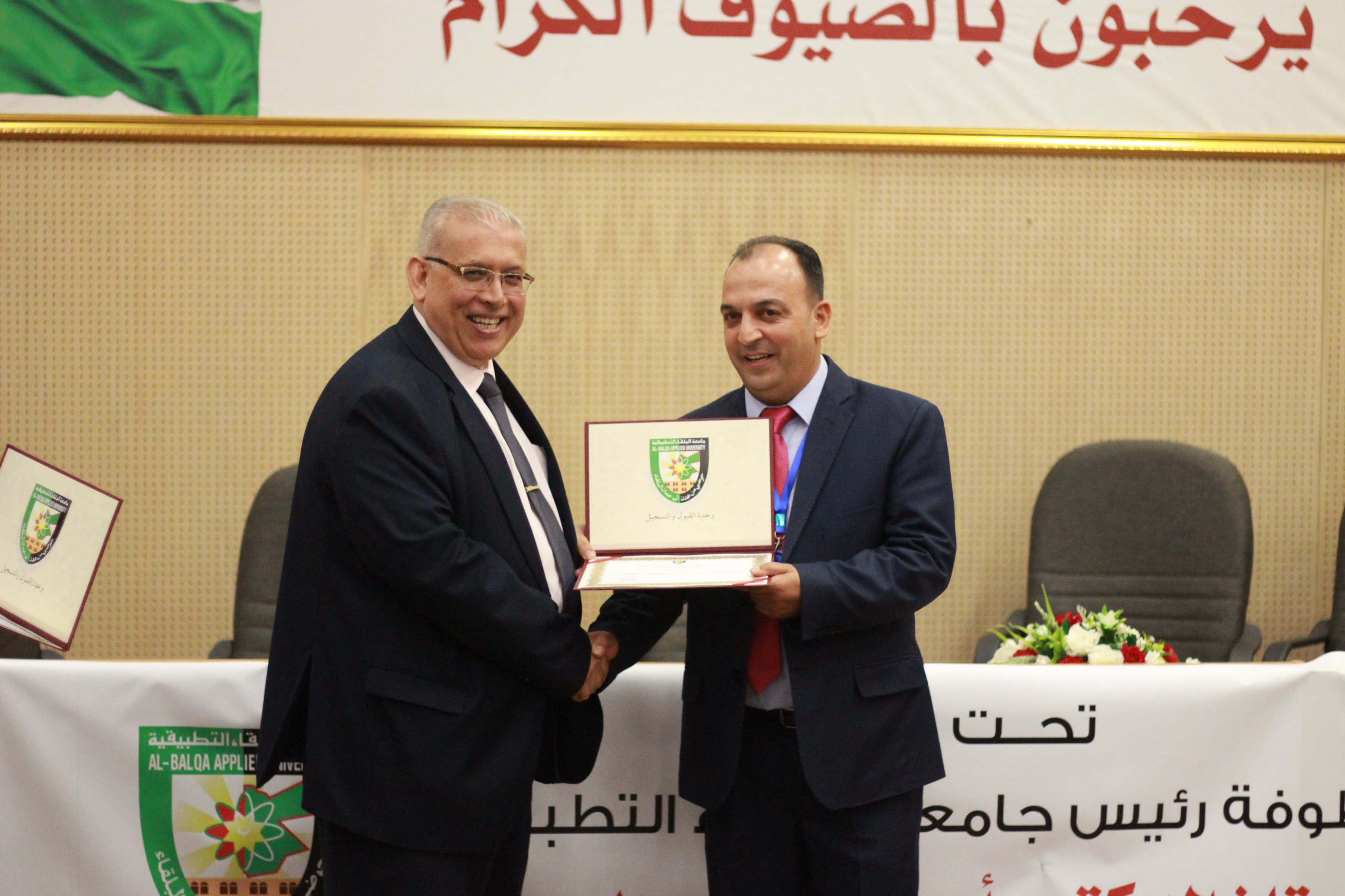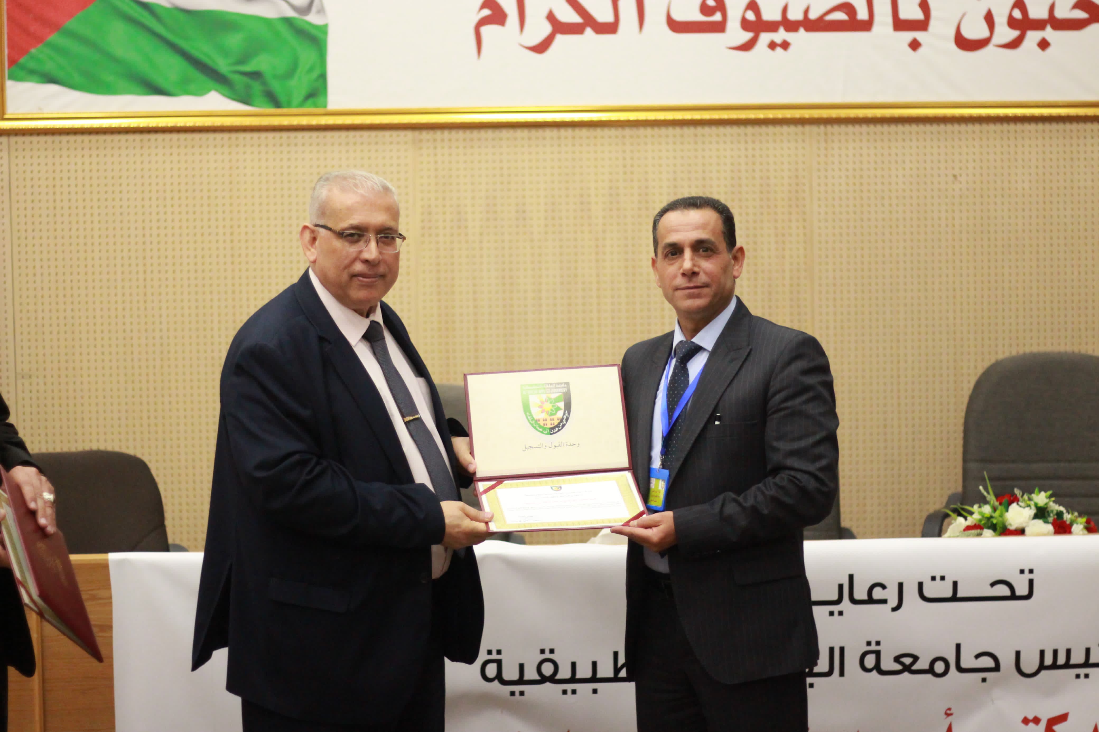 وفي ختام اليوم العلمي قام عميد الكلية الأستاذ الدكتور يحيا سلامه خريسات بتسليم شهادات الشكر والتقدير على المشاركين.