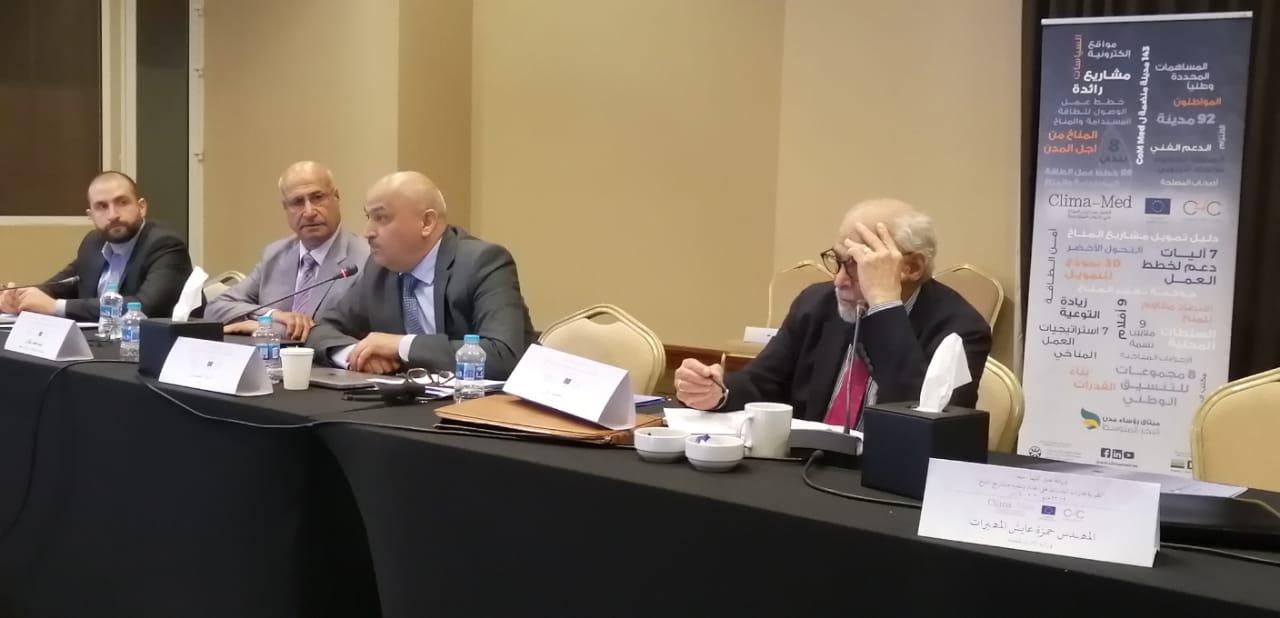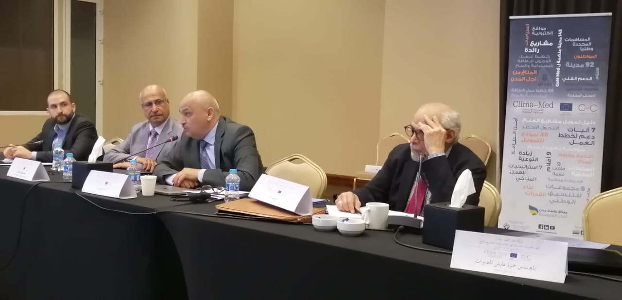 واستعرض الخبير الأول في مجال الطاقة والبُنية التحتية أسامة القعسماني من برنامج (كليما – ميد / Clima - Med) خِطط السيكاب (SEACAOPs) التي تم إعدادها في الأردن من خلال مكتب المساعدة في برنامج (كليما – ميد / Clima - Med)، وخاصة ما يتعلّق بدور السلطات المحلية في مواجهة تغيّر المناخ وتحديات التنمية المحلية، والدعم الذي يقدمه مكتب المساعدة في (كليما – ميد / Clima - Med) لمساعدة البلديات على إعداد خِطط المناخ.