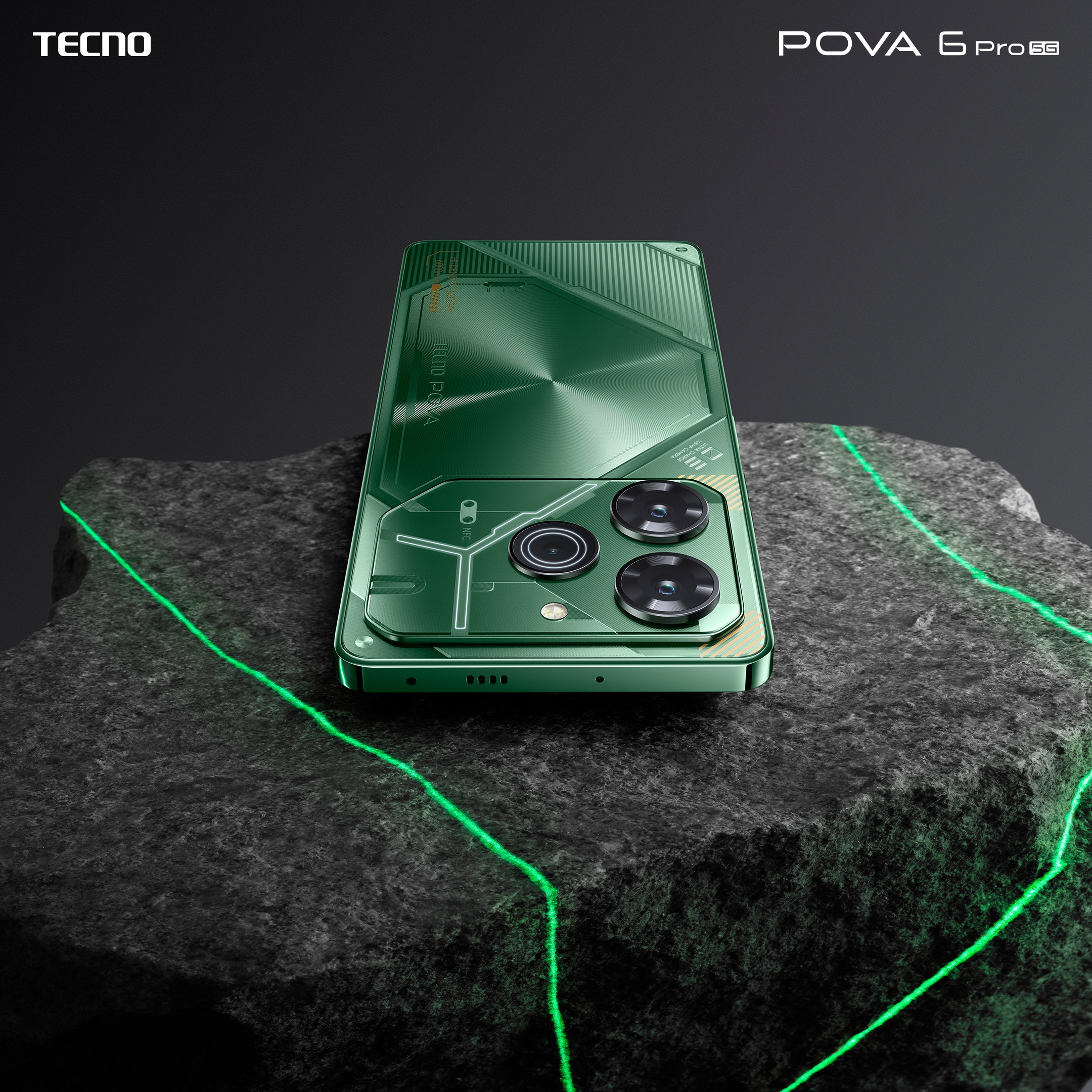 يشمل التصميم المتداخل بالتكنولوجيا أيضًا حافة متوسطة P-NCVM الأولى من نوعها لتعطي تصميم ناعم، وتقنية النقش بالليزر المتقدمة التي تخلق شعورًا دقيقًا ولكن قويًا لا يظهر بصمات الأصابع. يتوفر POVA 6 Pro 5G باللونين - الاخضر المذنبي والرمادي النيزكي و كلاهما يلتقط قوة وأناقة المستقبل لسلسلة POVA.