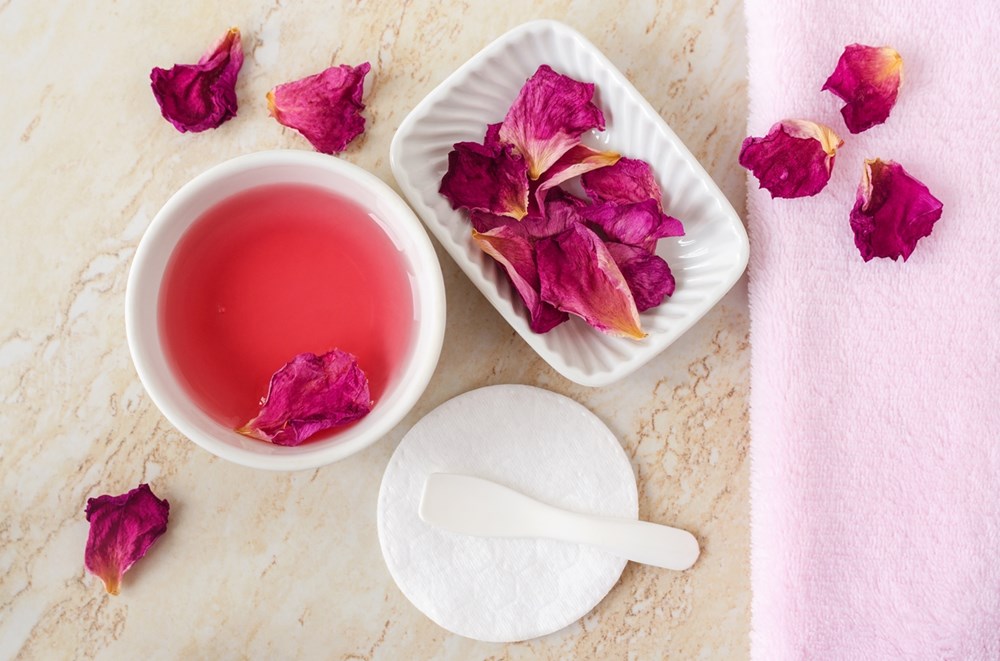 يحتوي ماء الورد على فيتامينَيْ: (C وA)، إضافةً إلى أن له خصائص مضادة للالتهابات.