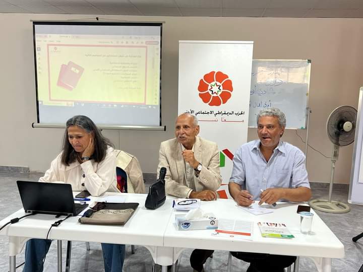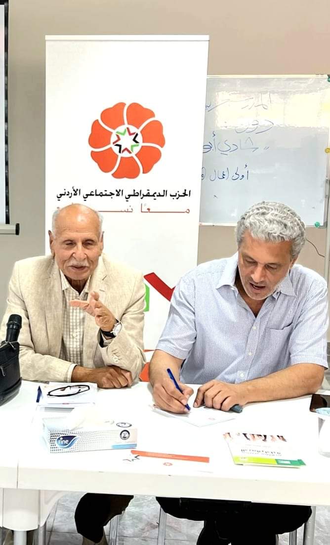 وشارك في التدريب من أصدقاء الحزب د. رياض صبح، د. أحمد عوض. د. ذوقان عبيدات أ.حسام عايش ومن أعضاء الحزب أ.فارس شديفات ود. نبيهة عبد الرازق