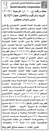 عطاءات صادرة عن المؤسسة العامة للضمان الاجتماعي