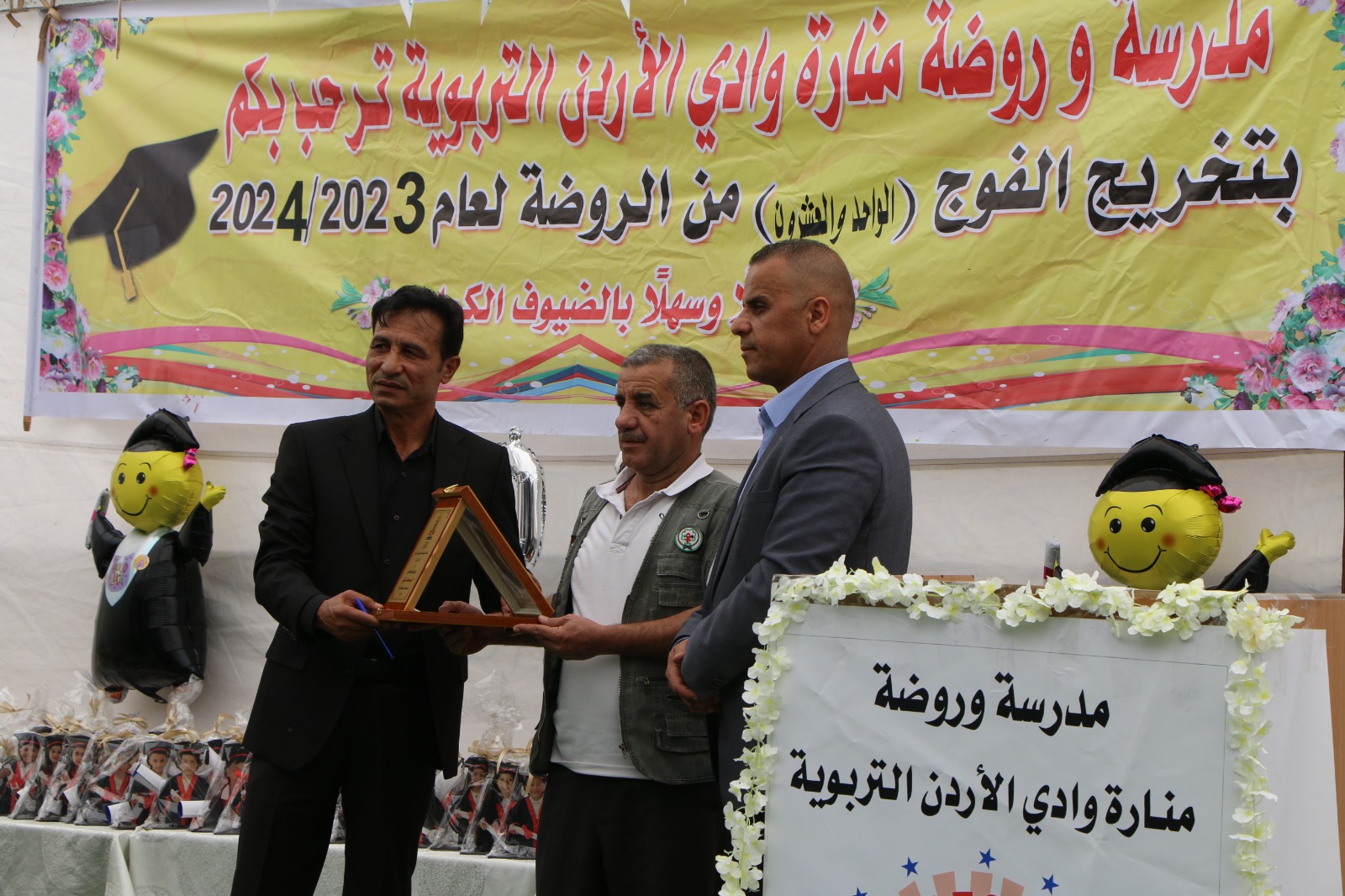 بدوره وجه المدير العام السيد نوفان ابو ارقيق شكره وتقديره لمديرية تربية الشونة الجنوبية على متابعتها وحضورها حفل التخرج ممثلة بمدير التربية والتعليم الدكتور مازن هديرس ومسؤول التعليم الخاص الأستاذ محمد اليماني،وقدم الدروع التذكارية لهما.