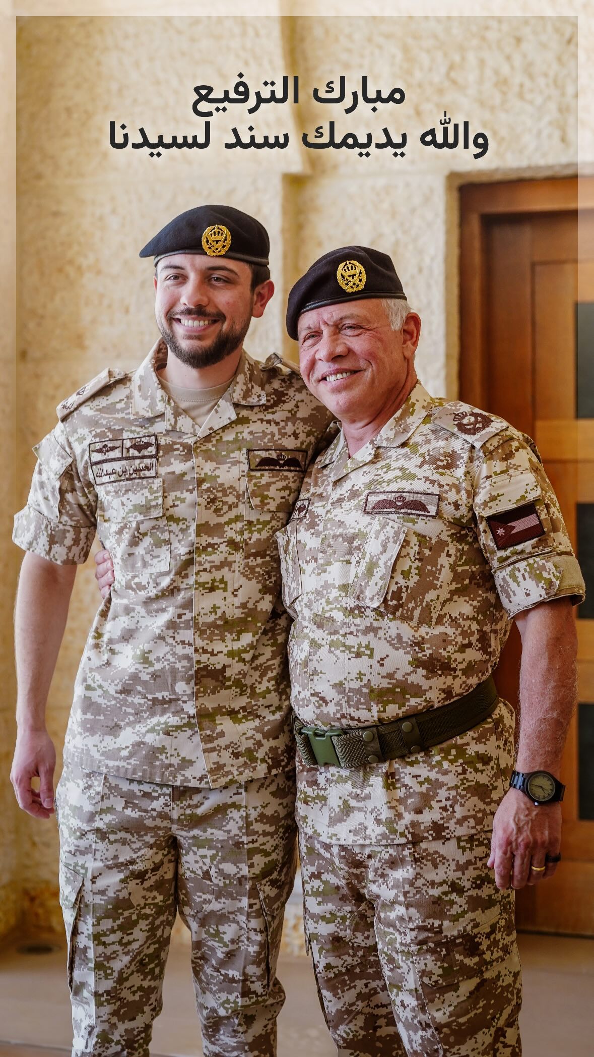 عمون - هنأت جلالة الملكة رانيا العبدالله، سمو الأمير الحسين بن عبدالله الثاني، بمناسبة ترفيعه إلى رتبة رائد في القوات المسلحة الأردنية. |