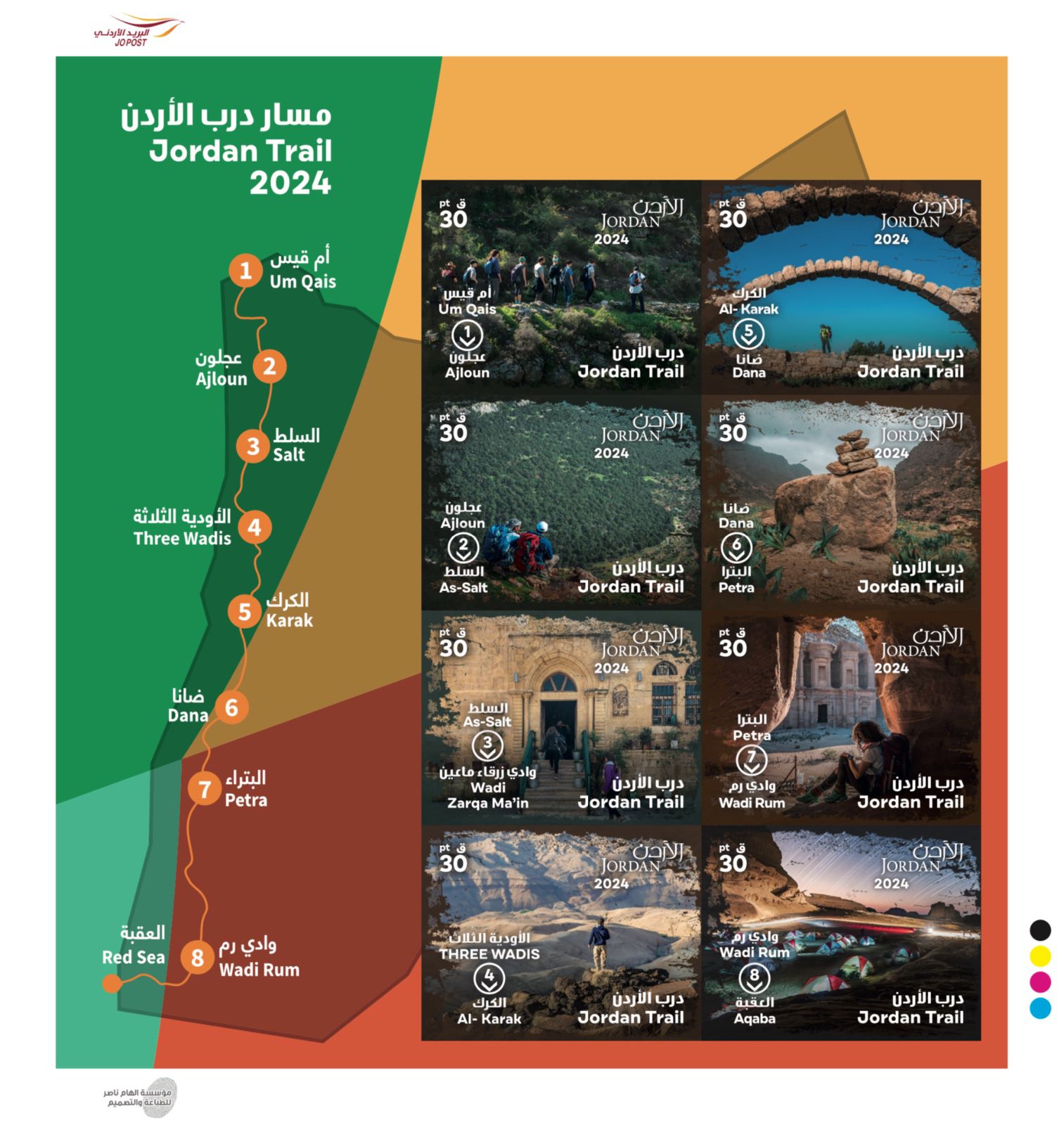 درب الأردن وجهة سياحية وأيقونة عالمية لعشاق المسير والترحال فقد نال العديد من الجوائز وكرّم أجل تكريم، واليوم يحتفي به ويجسد في مجموعة طوابع بريدية.