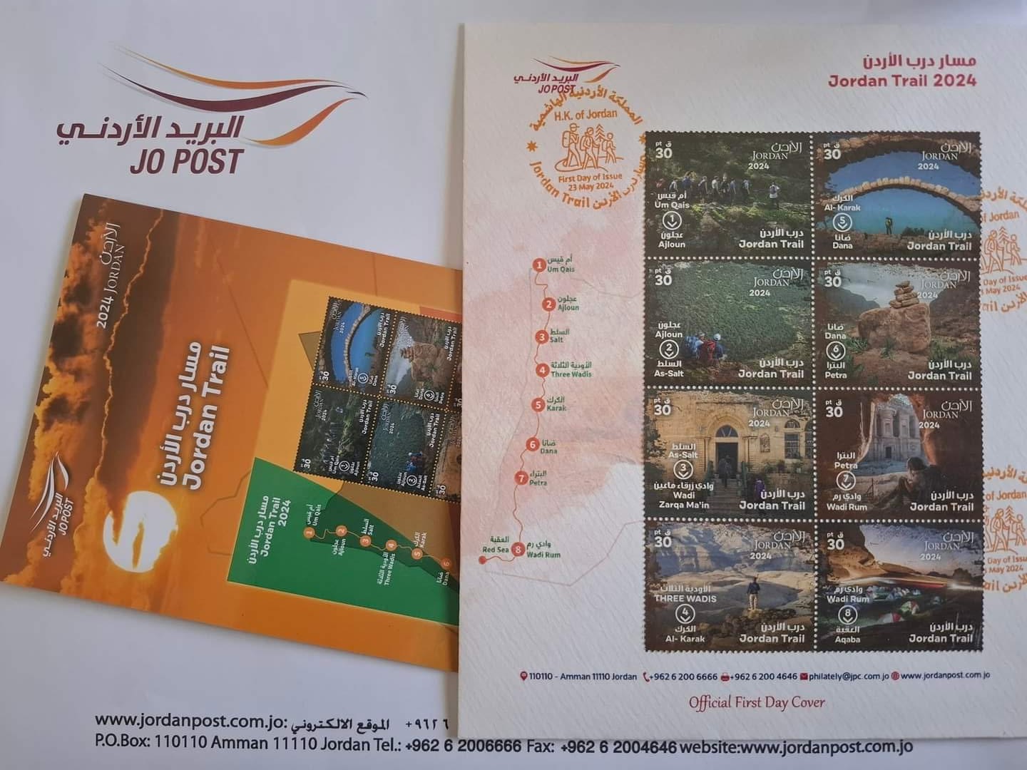 أصدرت شركة البريد الأردني مجموعة بريدية تكريما لدرب الأردن مجسدة مراحله بإصدار متاح للجمهور من هواة جمع الطوابع والمستثمرين فيه مكونة من ثمانية طوابع كلا منها يرمز لمرحلة من المسار الممتد من أم قيس إلى خليج العقبة بطول 650 كم وبقيمة إجمالية دينارين و 400 فلس للمني شيت مقسمة بشكل موحد لكل طابع ويضاف 500 فلس لمغلف الإصدار الحامل لختم يومه الموافق 24/5/2024 مستوحى من رحلة عائلية والذي يحرص المهتمين باقتنائه بتاريخه، وبعدد 4000 شيت للإصدار كاملا، وهو واحد من إثنى عشرة إصدار تطرح خلال العام.