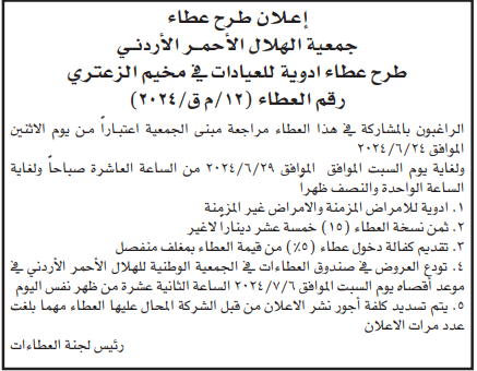 عطاء توريد ادوية لعيادات في مخيم الزعتري