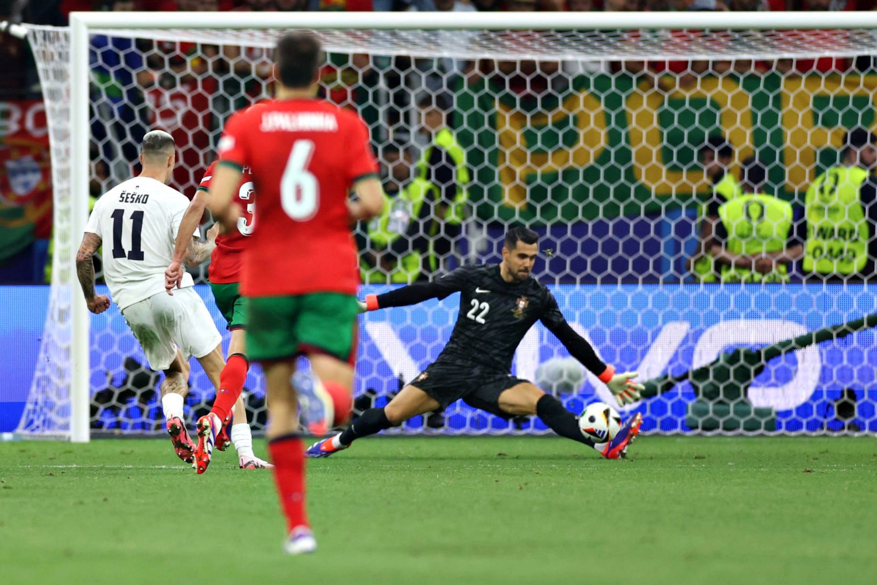 عمون - تأهل المنتخب البرتغالي إلى ربع نهائي يورو 2024، بفوزه على نظيره السلوفيني بركلات الترجيح، بعد انتهاء الوقتين الأصلي والإضافي بالتعادل دون أهداف. |