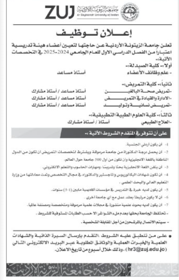 جامعة الزيتونة بحاجة لتعيين أعضاء هيئة تدريسية