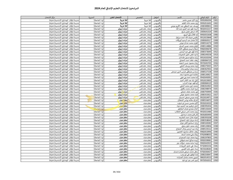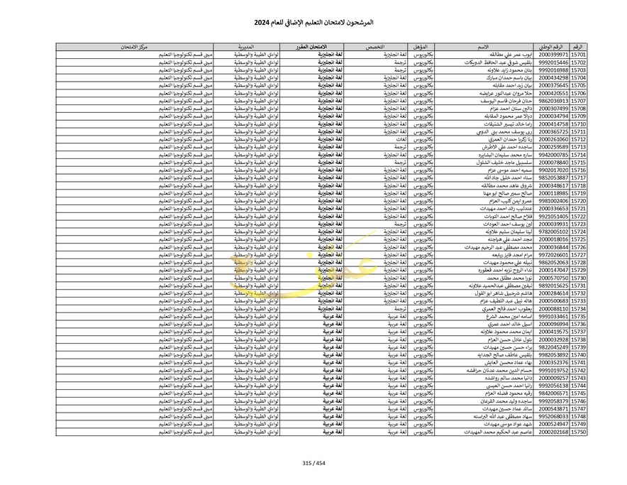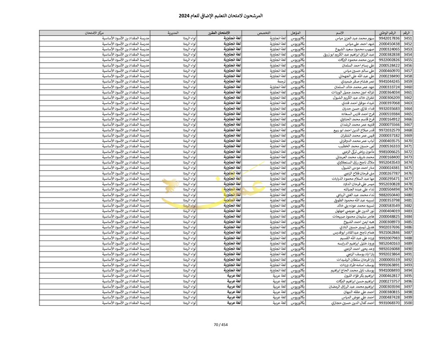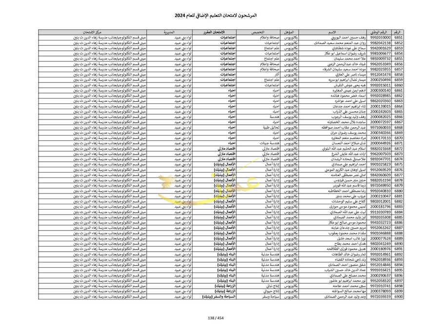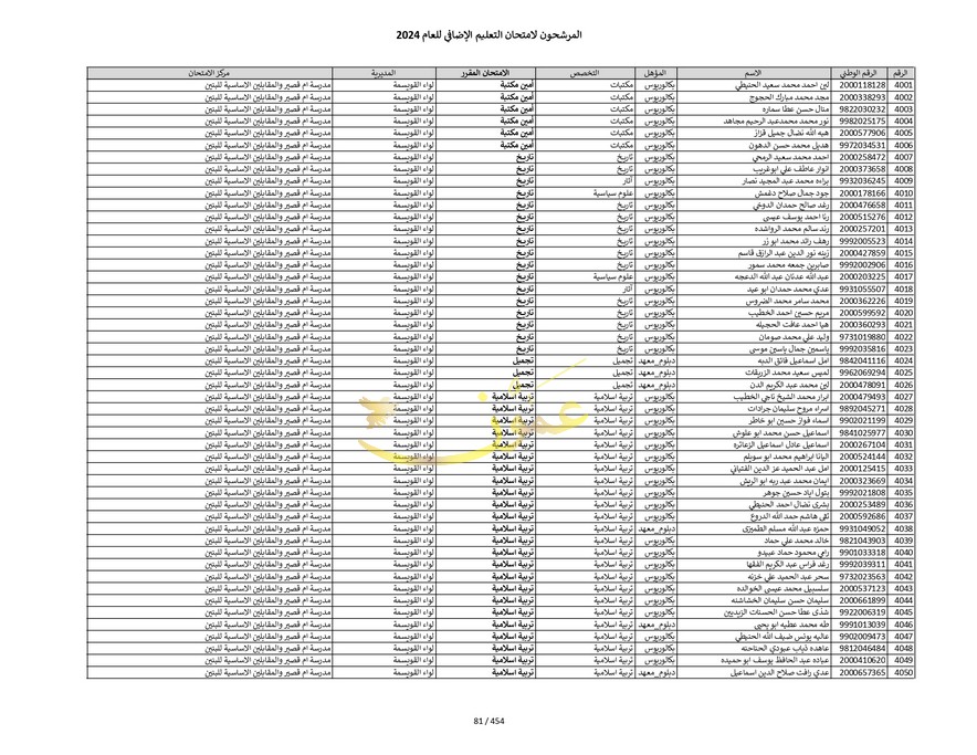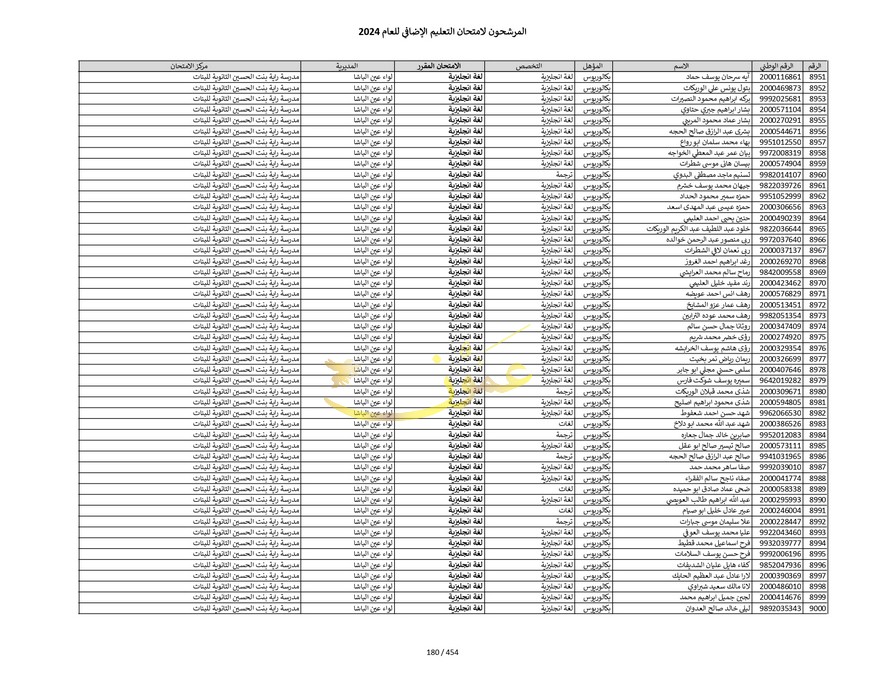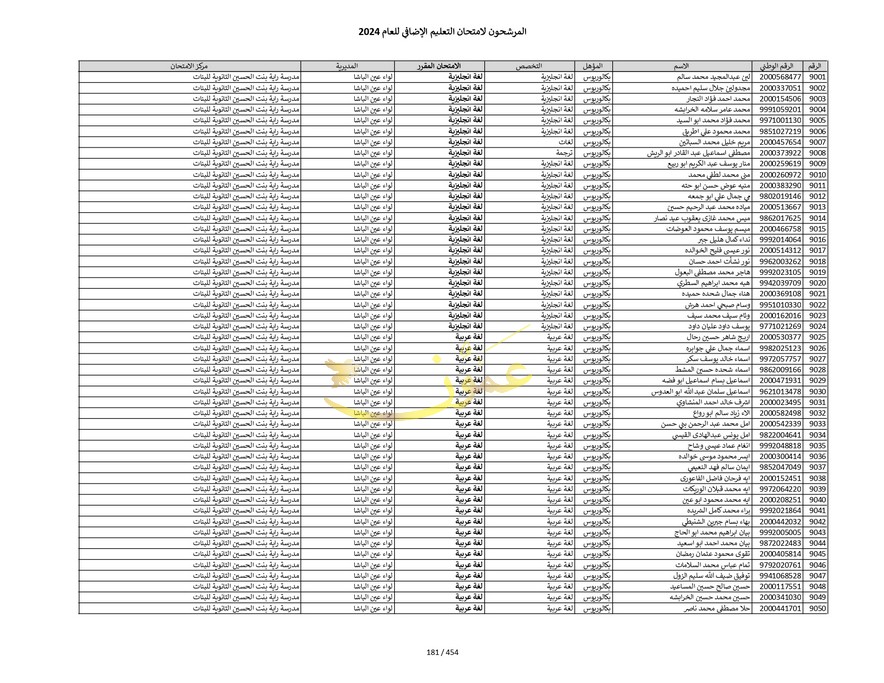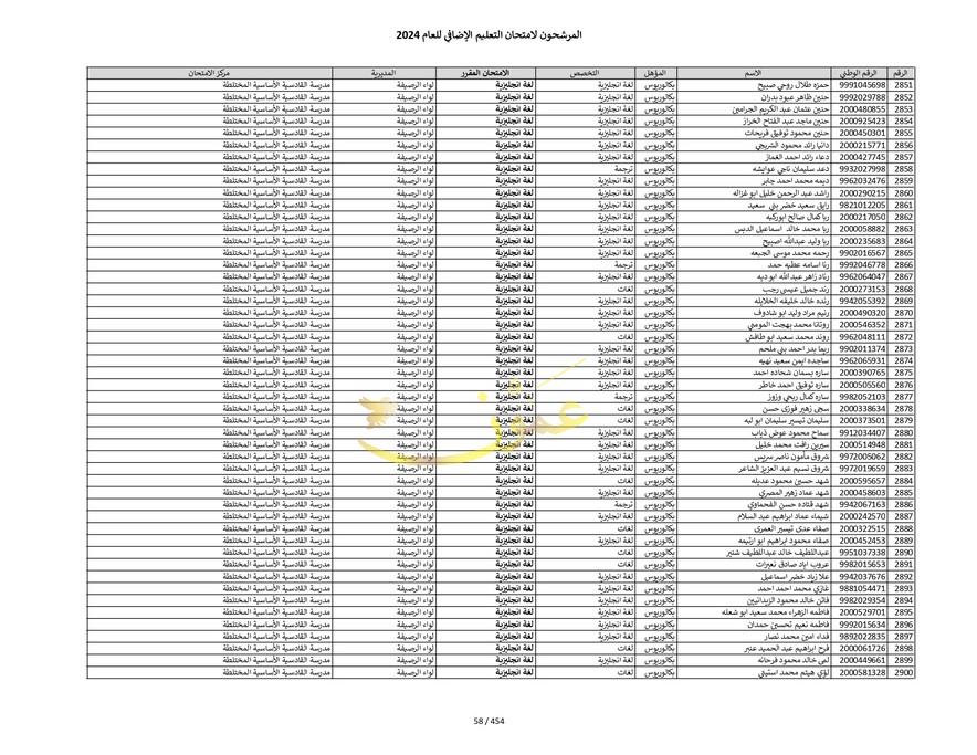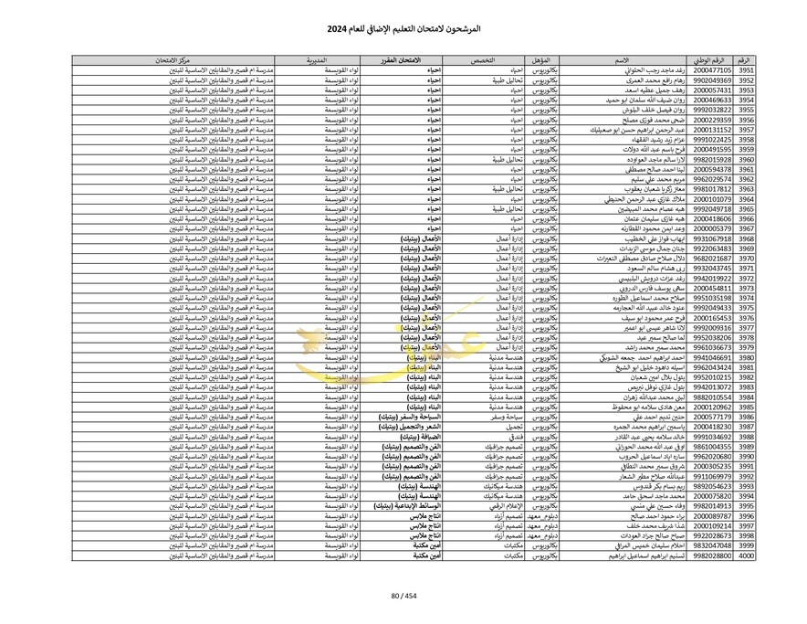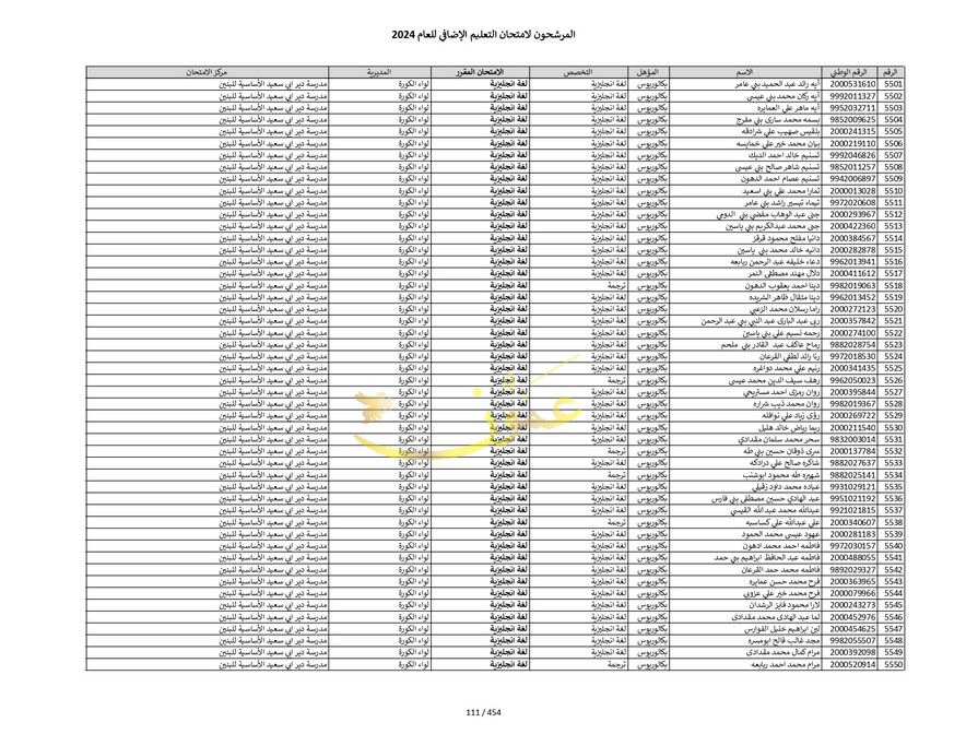 آلاف المدعوين لامتحان التعليم الإضافي (أسماء)