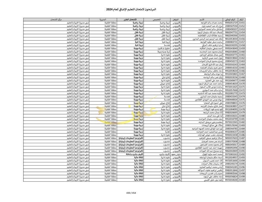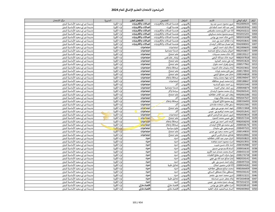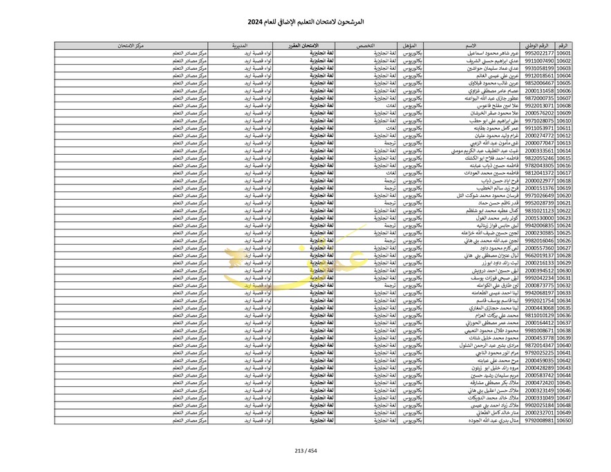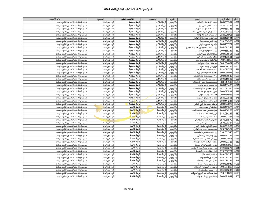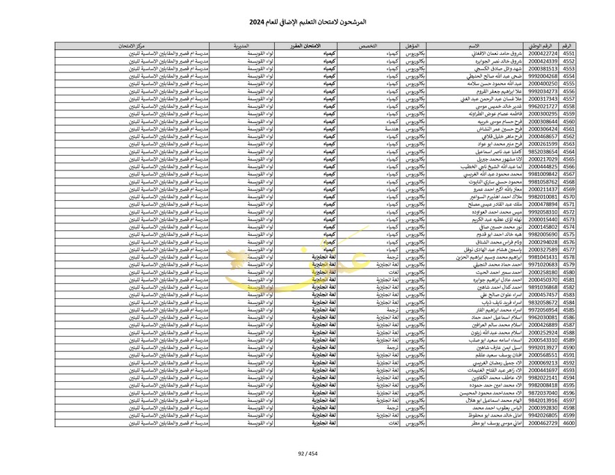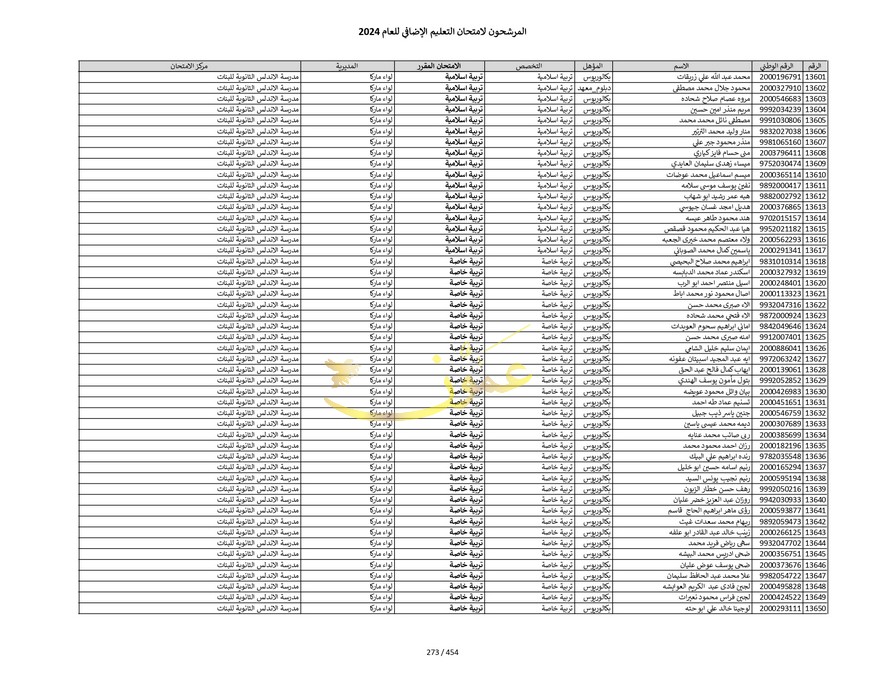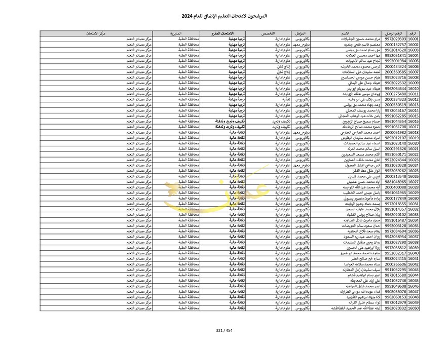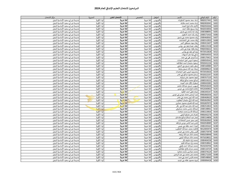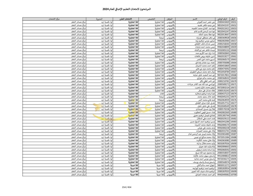 آلاف المدعوين لامتحان التعليم الإضافي (أسماء)