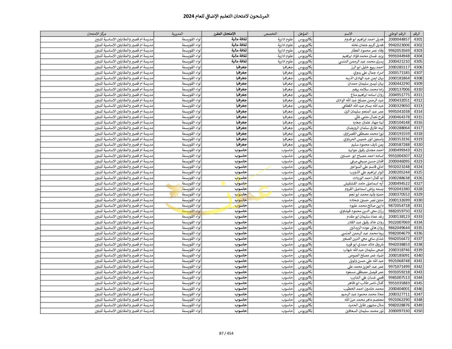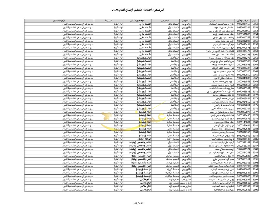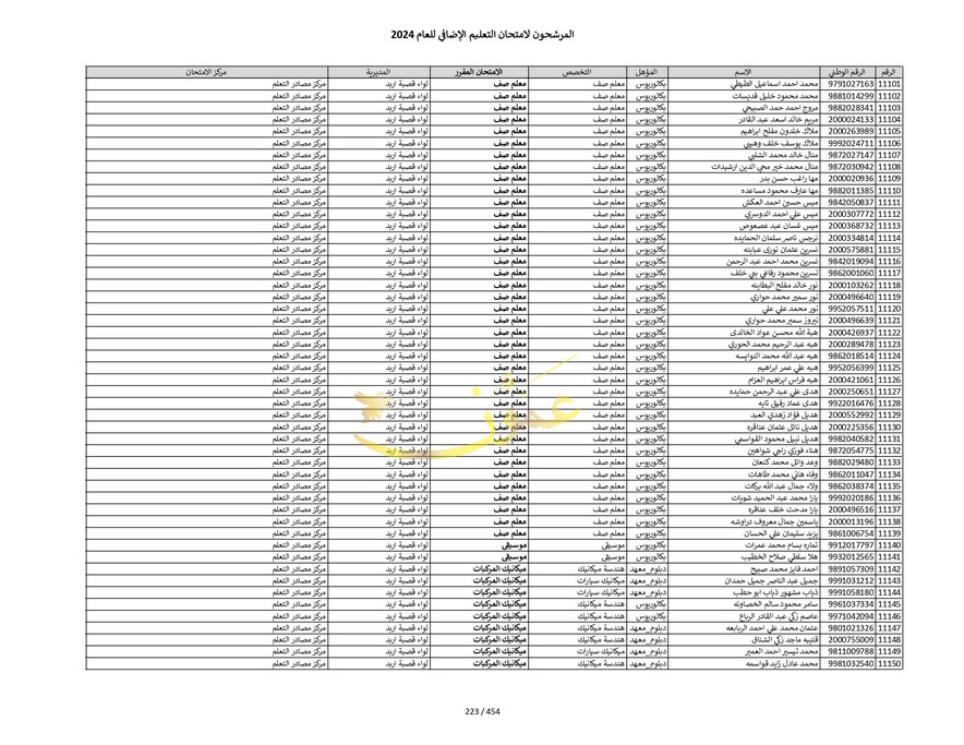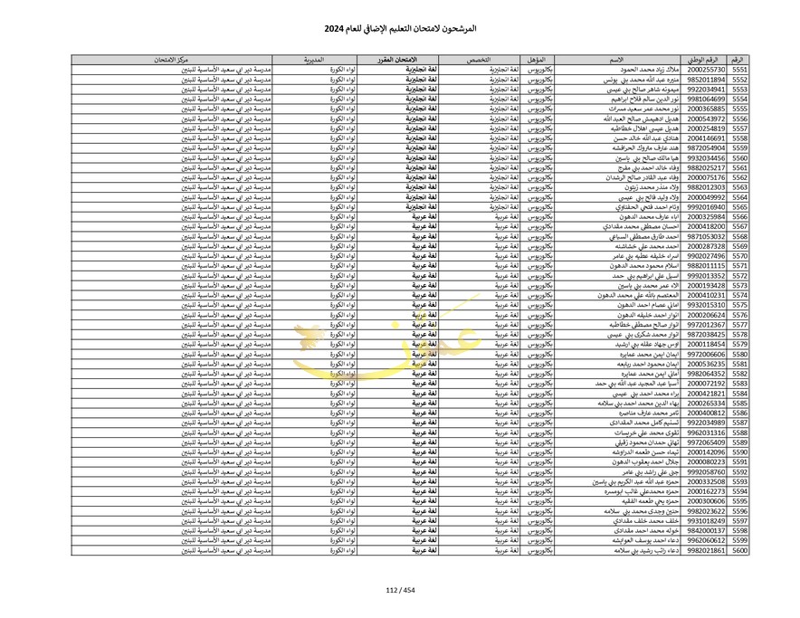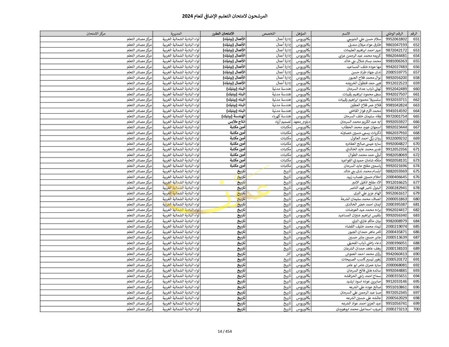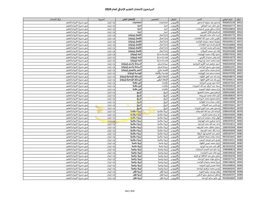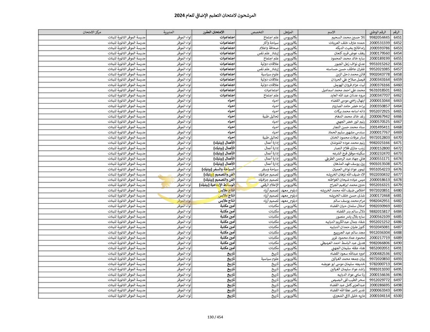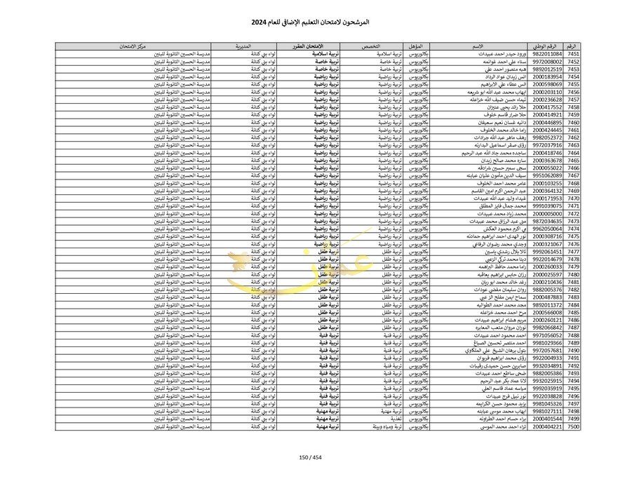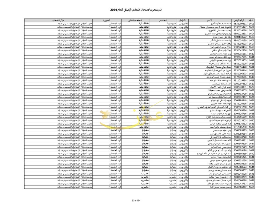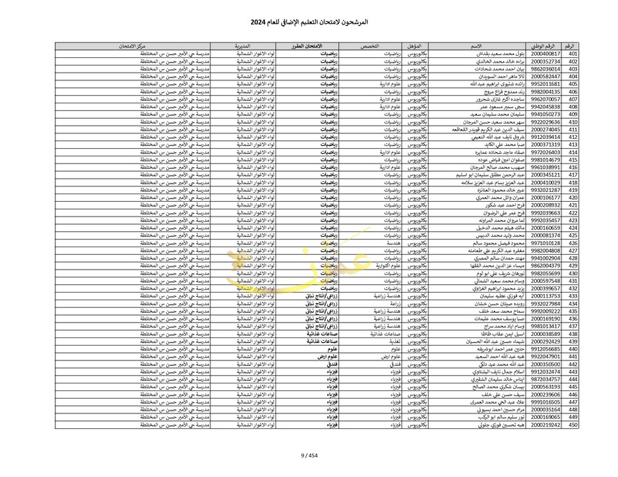 آلاف المدعوين لامتحان التعليم الإضافي (أسماء)
