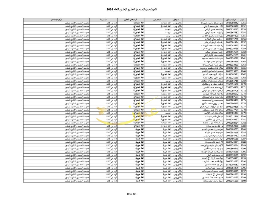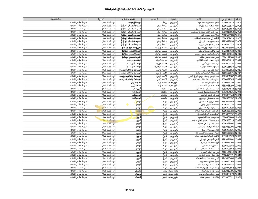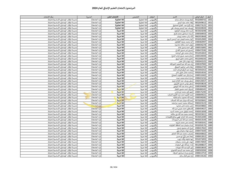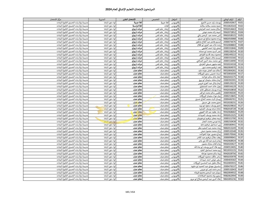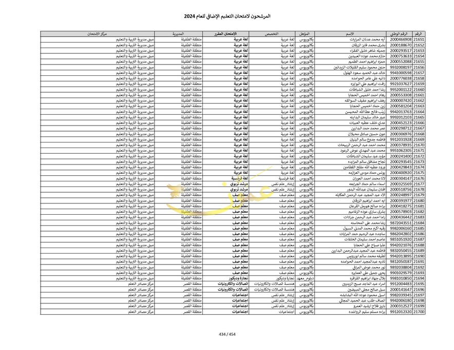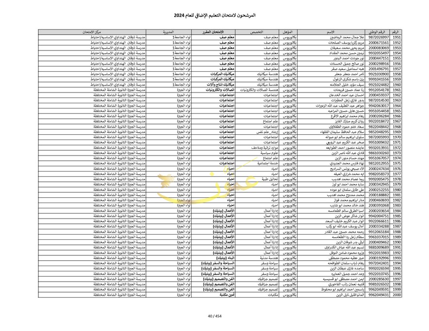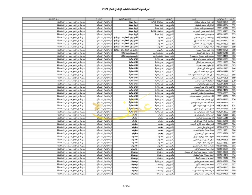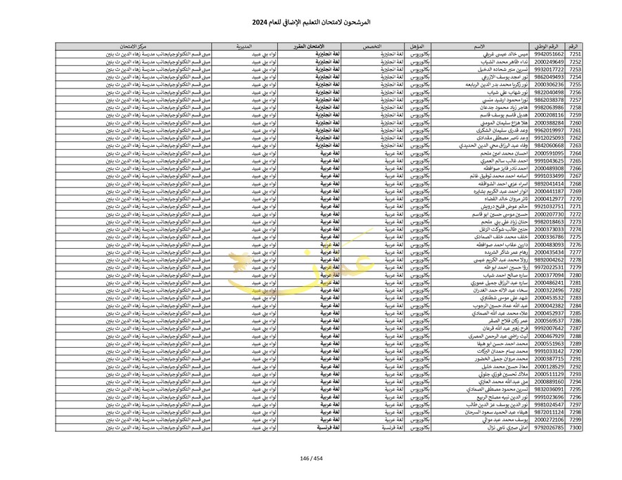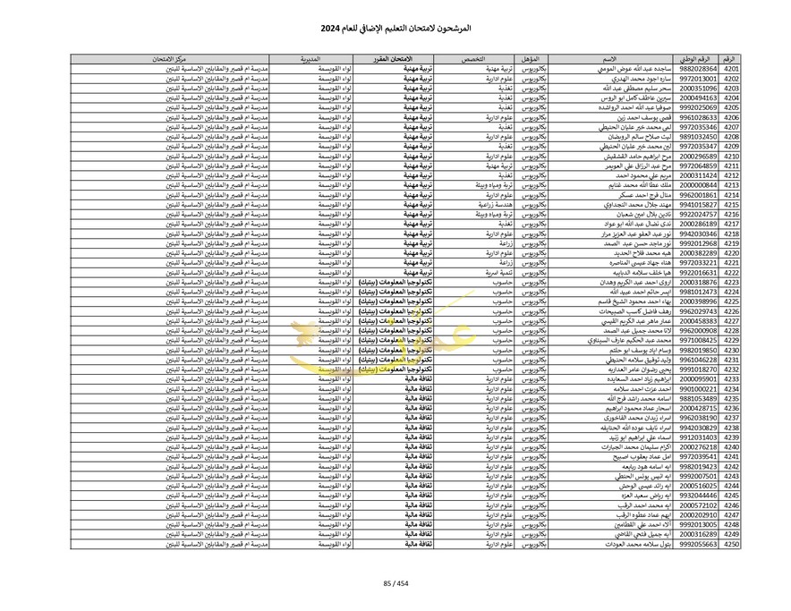 آلاف المدعوين لامتحان التعليم الإضافي (أسماء)