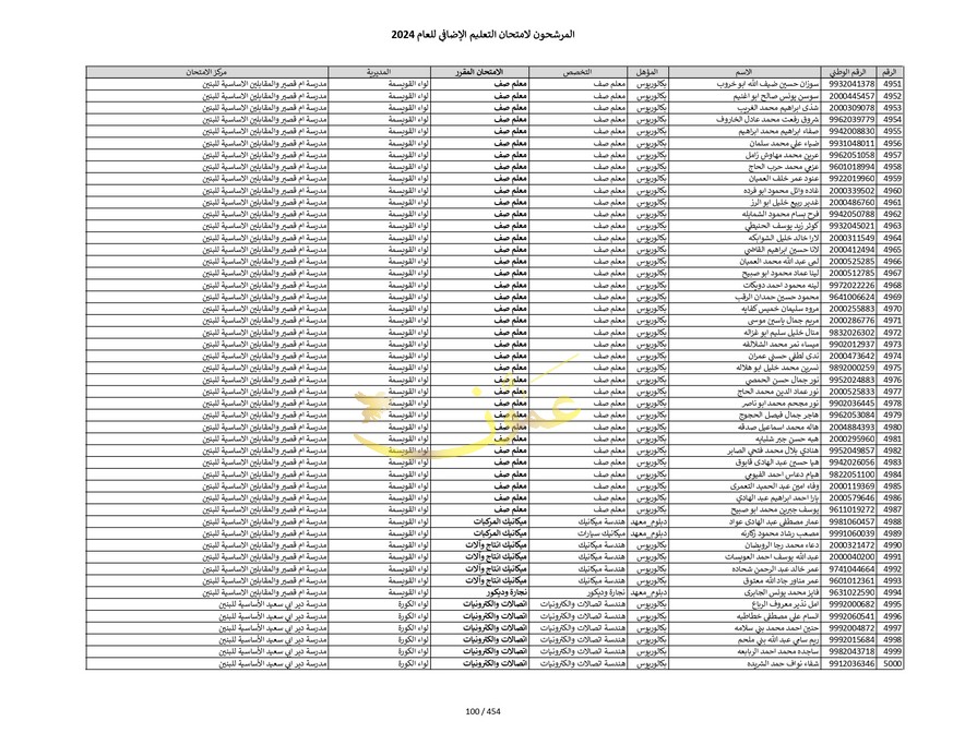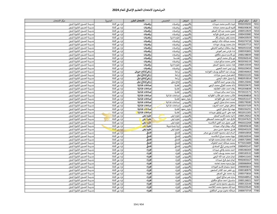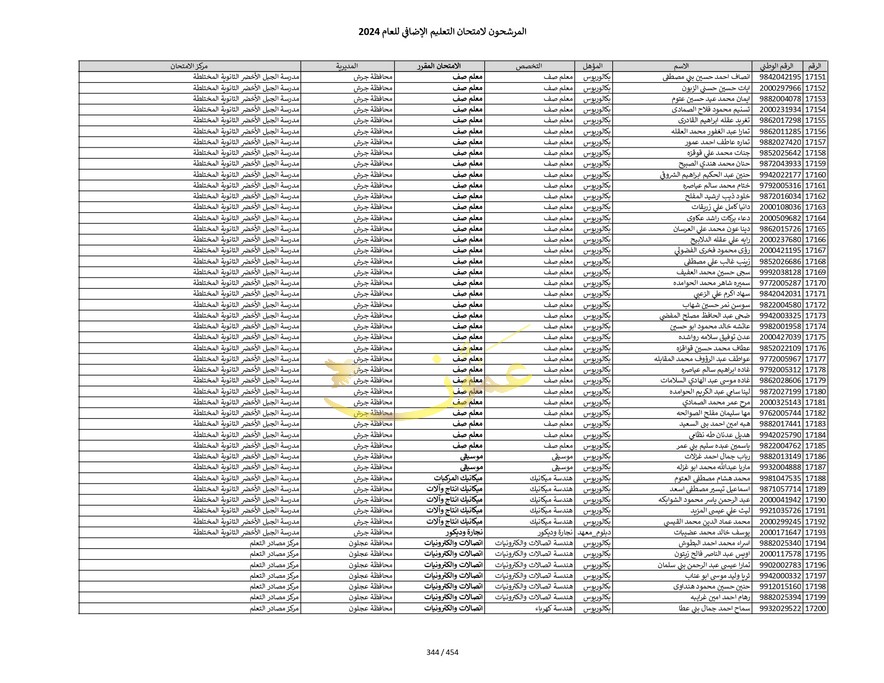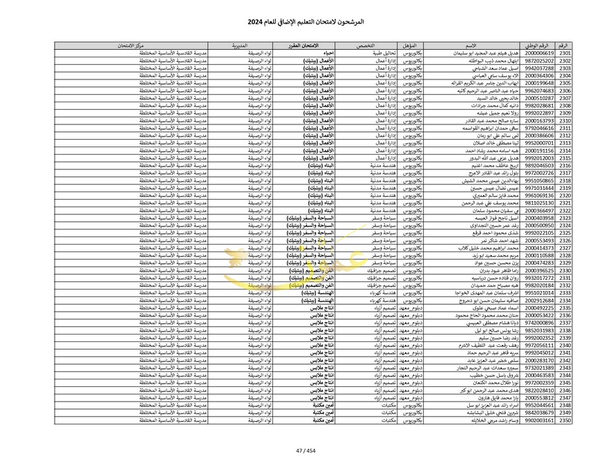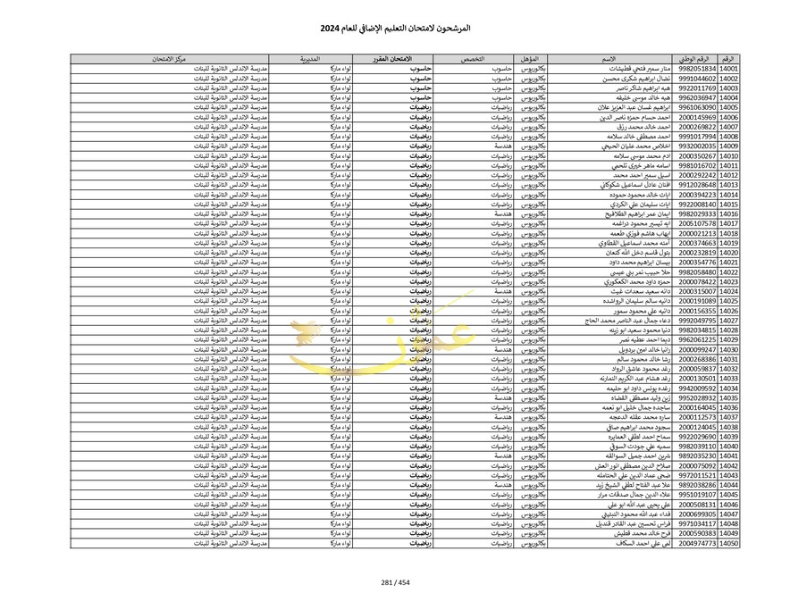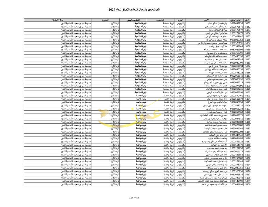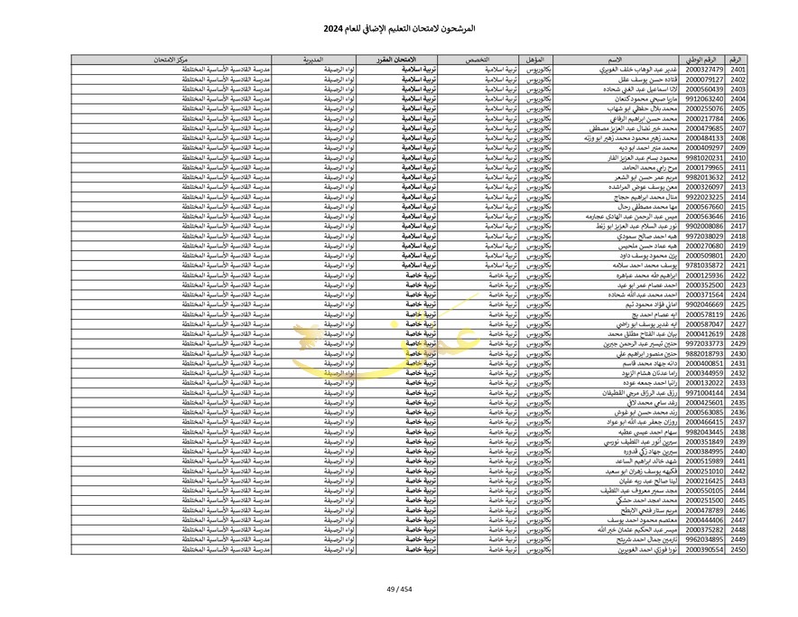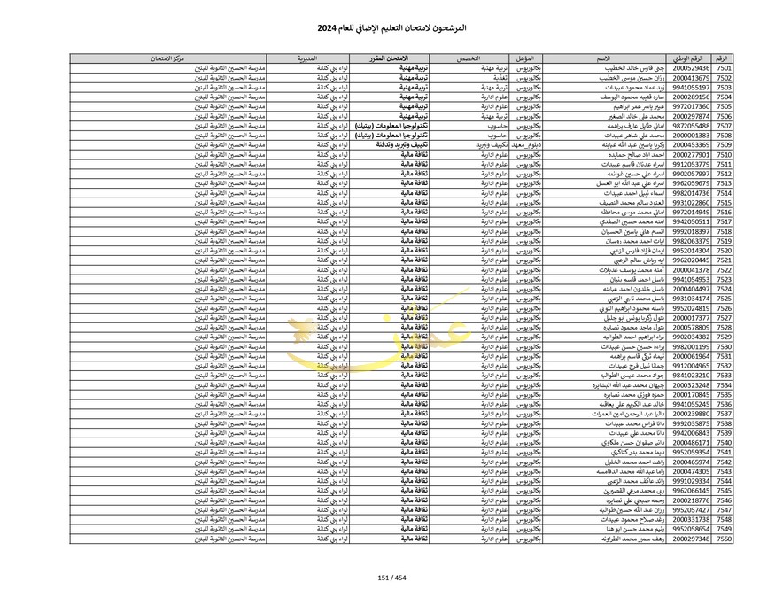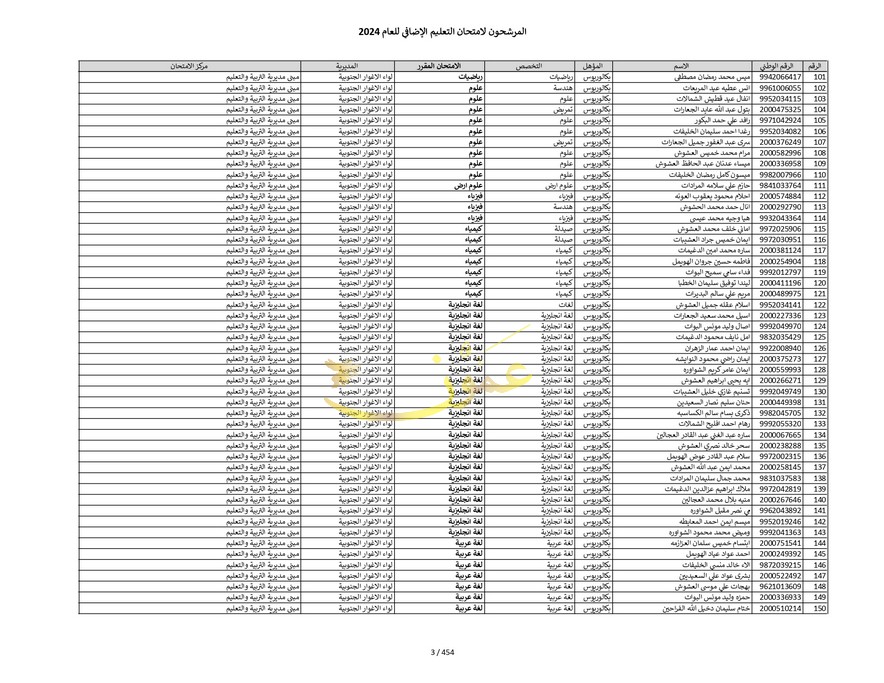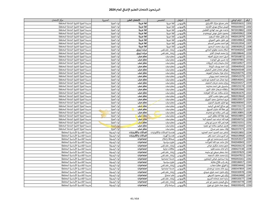 آلاف المدعوين لامتحان التعليم الإضافي (أسماء)